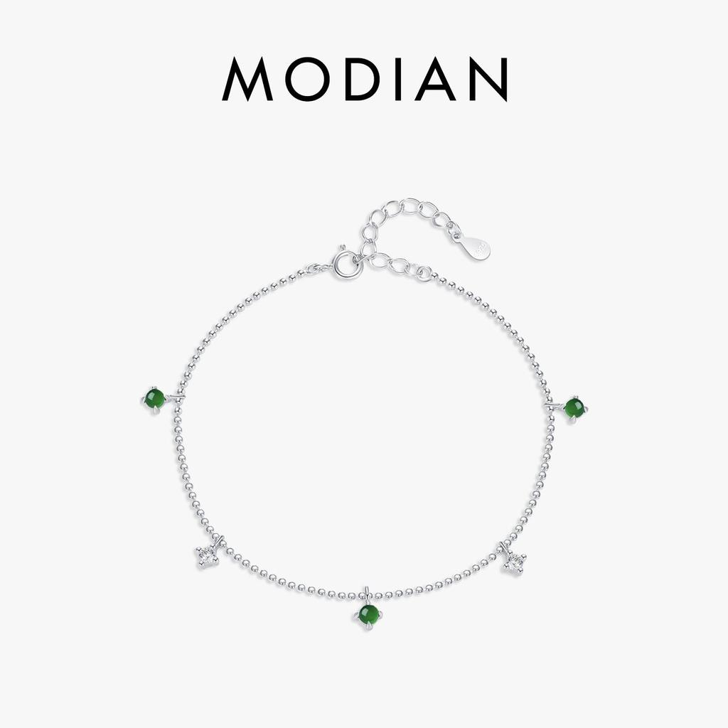 Modian 925 Sterling Zilveren Kleine Ronde Hanger Verstelbare Armband Groene & Doorzichtige Cz Link Ketting Armbanden Voor Vrouwen Sieraden Cadeau