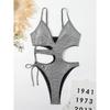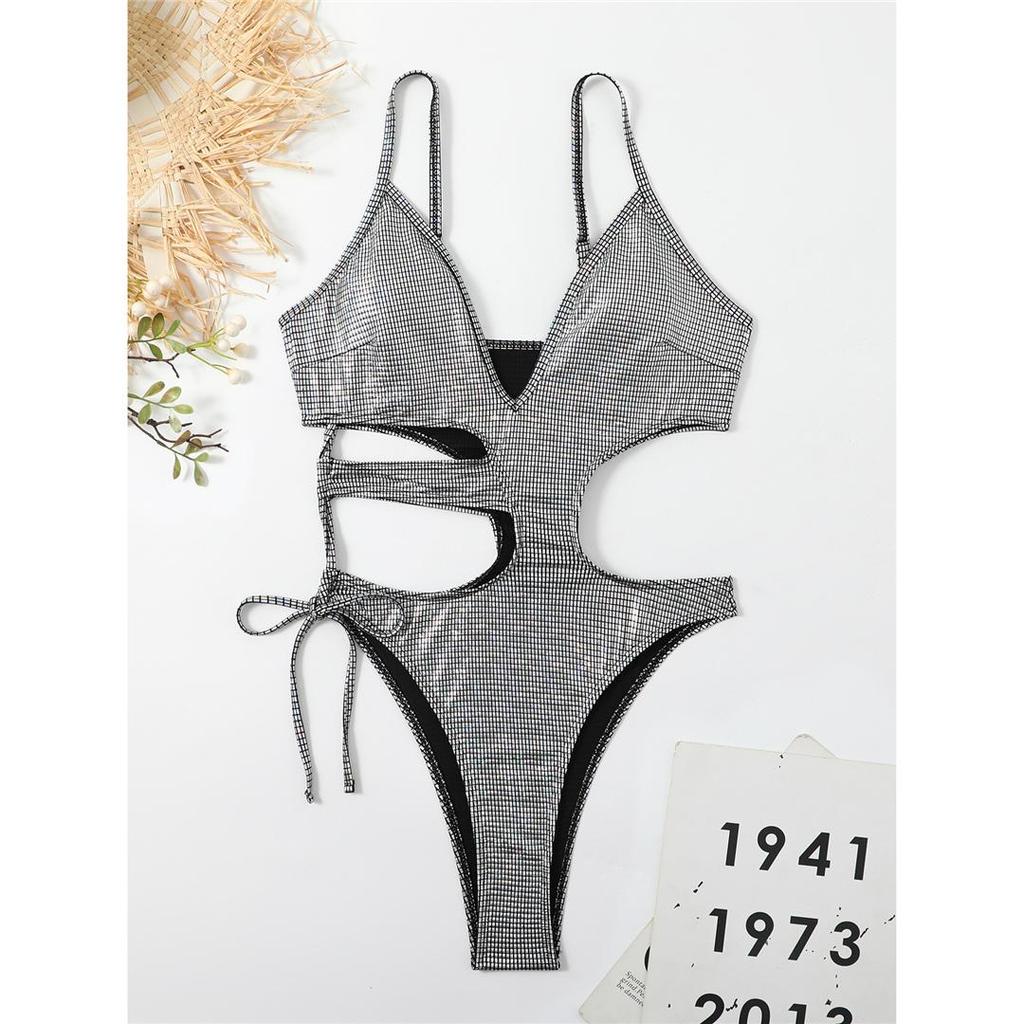 Sexy Asymmetric Plaid Cut Out One Piece Swimsuit Women Swimwear Female Monokini High Leg Cut Bather Bathing Suit Swim Lady