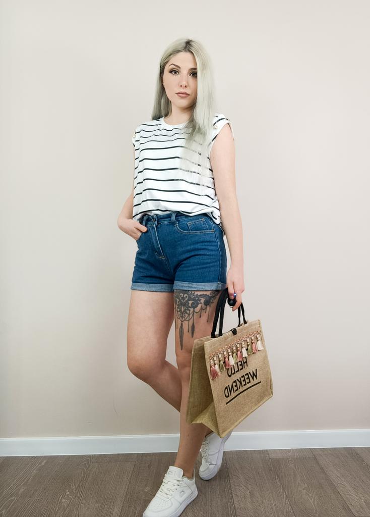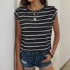 Summer Women Sleeveless Striped T-shirt O Neck Print