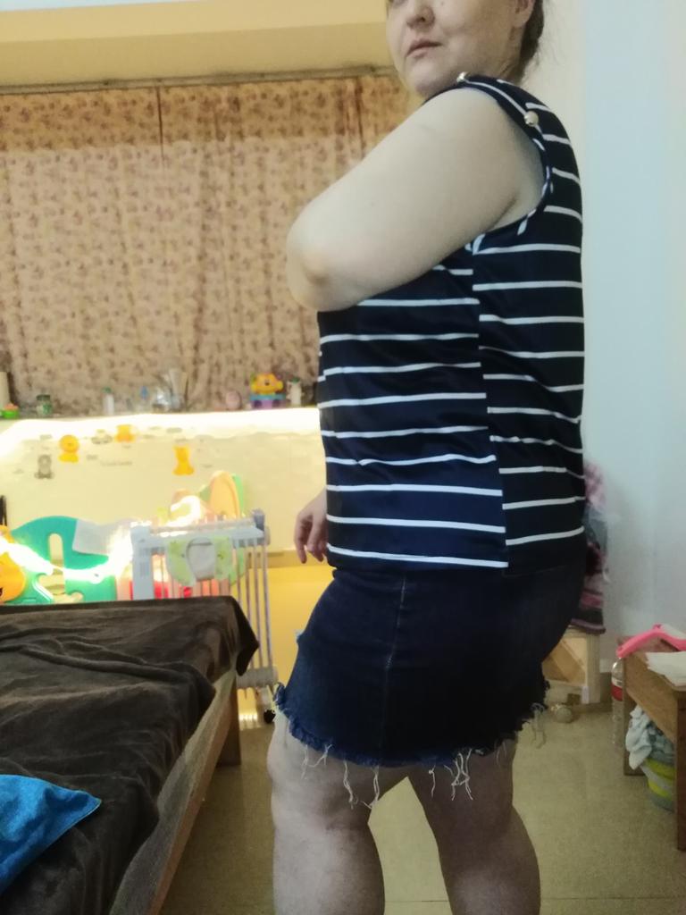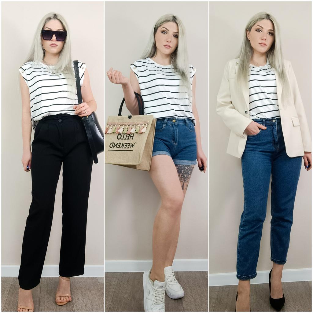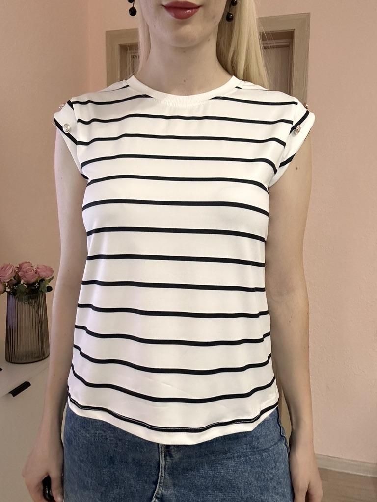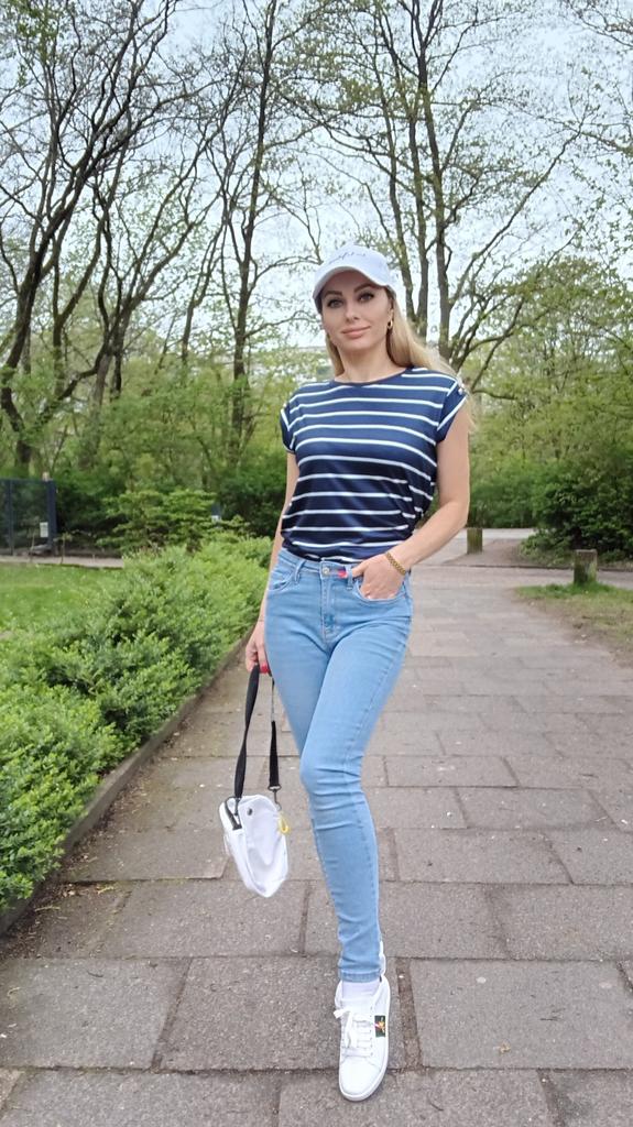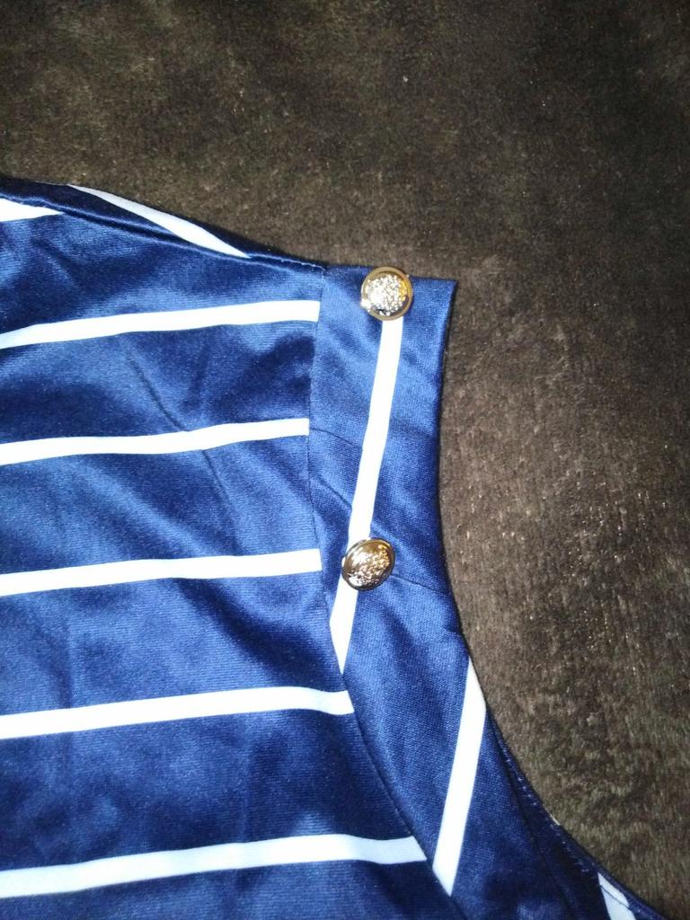 Beautiful striped t-shirt with buttons on sleeves 👌👌👌💯❣️ ❇️Delivery time: 42 days to Germany. The delivery was delayed, but I received a discount as an apology. Scope of delivery: The delivery includes a beautiful T-shirt in the appropriate color and size. The product is available in 4 different colors. It is available in sizes S to XL. I ordered the product in blue and it fits me perfectly and looks very nice!👌💯💯💯💋. My measurements are 90-65-90cm and 167cm tall. The product fits me perfectly 💯!. Very nice quality!!!👌👌👌👌 Stretchy and opaque!❣️👌I especially like the striped pattern and the sleeves with buttons. The buttons are just for decoration. Material composition: 95% polyester and 5% elastane. I am very satisfied with my order!👌💯💯🌷 5 stars 🌟 🌟 🌟 🌟 🌟 hands down. Thanks Joom and the seller!❣️