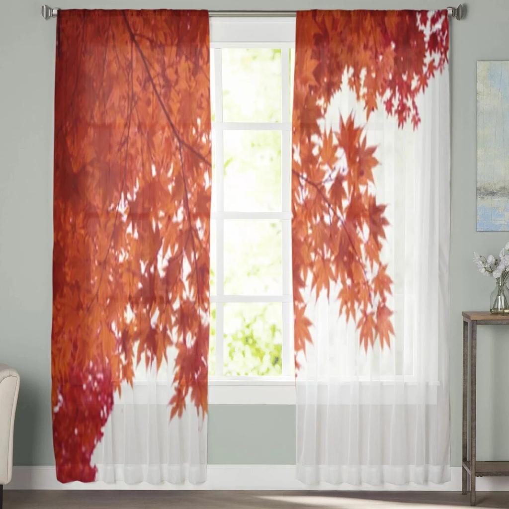 Red Autumn Maple Tree Leaves Sheer Curtains Bedroom Voile Curtain Living Room Window Sheer Curtains Kitchen Tulle Drapes