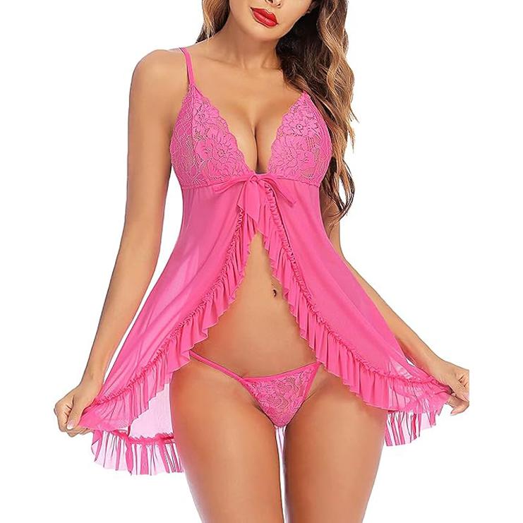 Women's Lace & Net Floral Above Knee Babydoll Lingerie