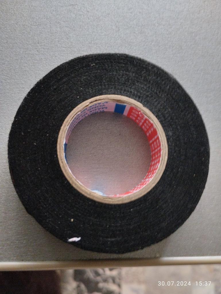 The electrical tape is unusual, rag-like, transparent, but it performs its functions.