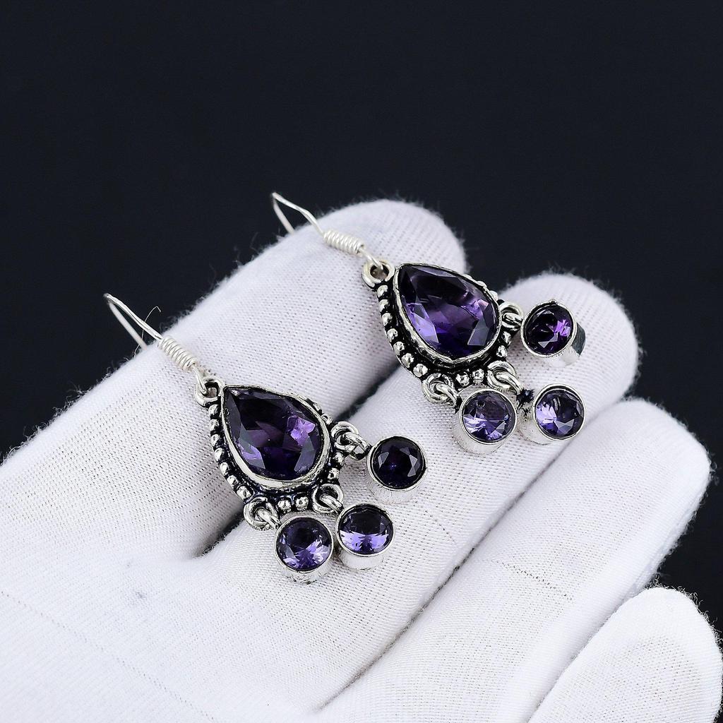 Amethyst Earrings, Gemstone Earring, Antique Amethyst Gemstone Silver Earring, 925 Solid Silver Gemstone Jewelry, Gemstone Earring For Her