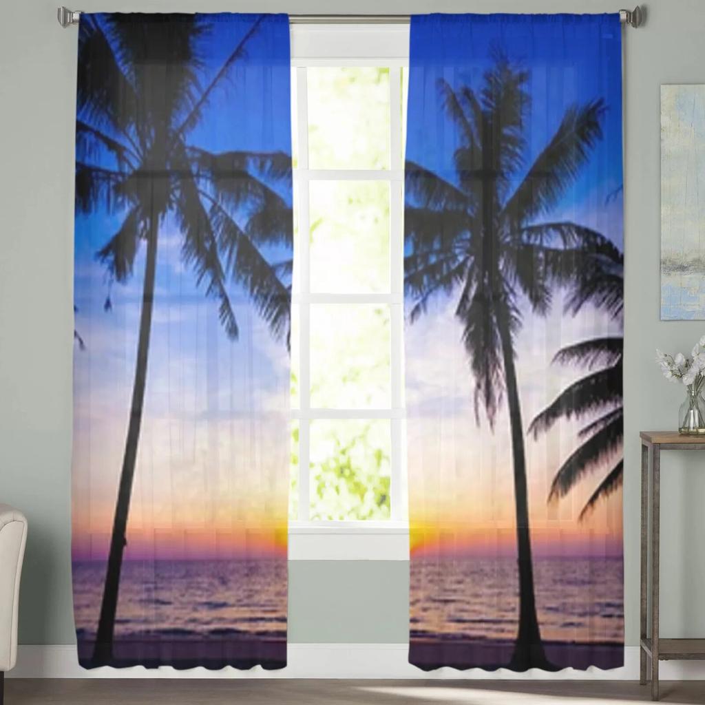 Sunset On The Beach Sheer Curtains Bedroom Voile Curtain Living Room Window Sheer Curtains Kitchen Tulle Drapes