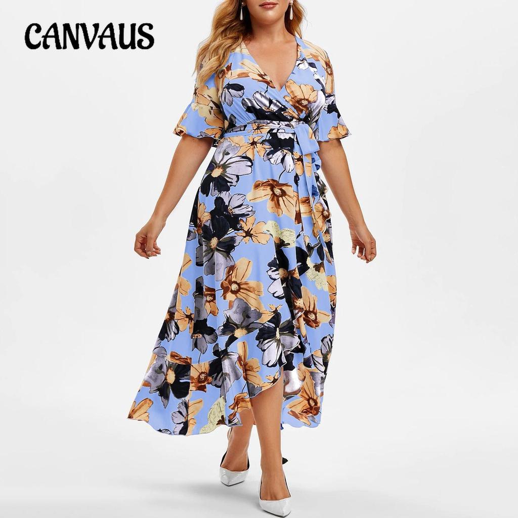 Summer Women's Dress V-neck Short Sleeve Large Size Casual Bohemian Print Irregular Dress Fishtail Skirt