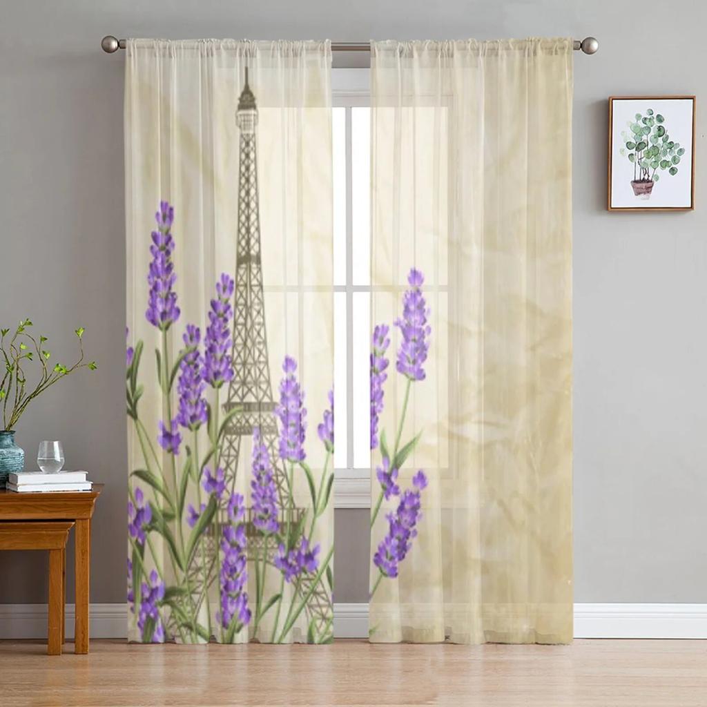 Eiffel Tower With Lavender Sheer Curtains For Living Room Kids Bedroom Tulle Curtains Kitchen Window Treatment Drapes