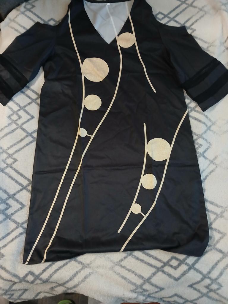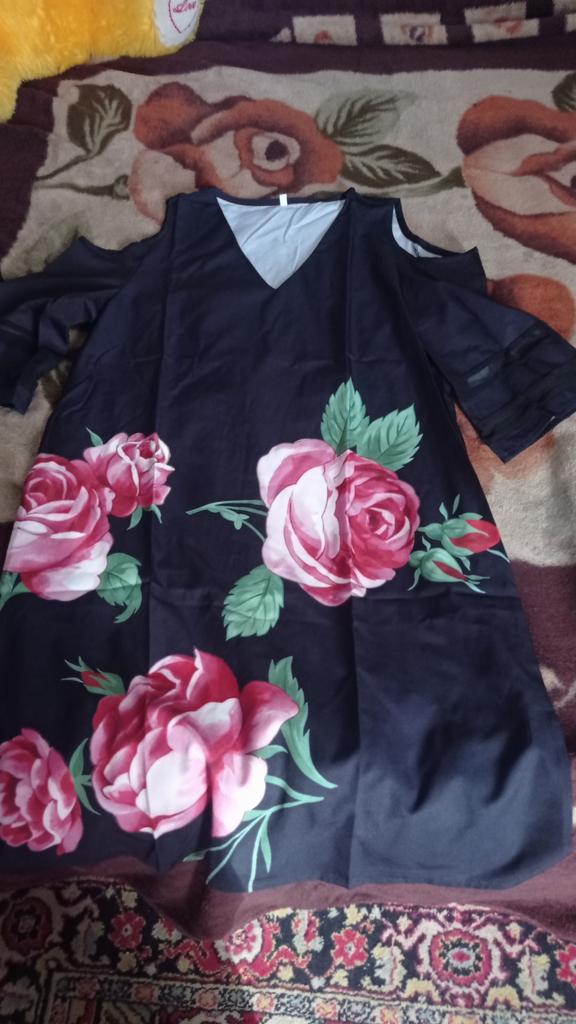 The dress is a complete disappointment! The fabric is like for house dresses (like artificial silk), absolutely no shape, as if they took a bag and sewed sleeves to it (although the photo shows the 'trapeze' model), the color is also a bummer, the dress (if you can call it that) is dull, the colors do not match the proposed photo at all. In general, friends, this is a waste of money! Apparently I ran into some scammers!