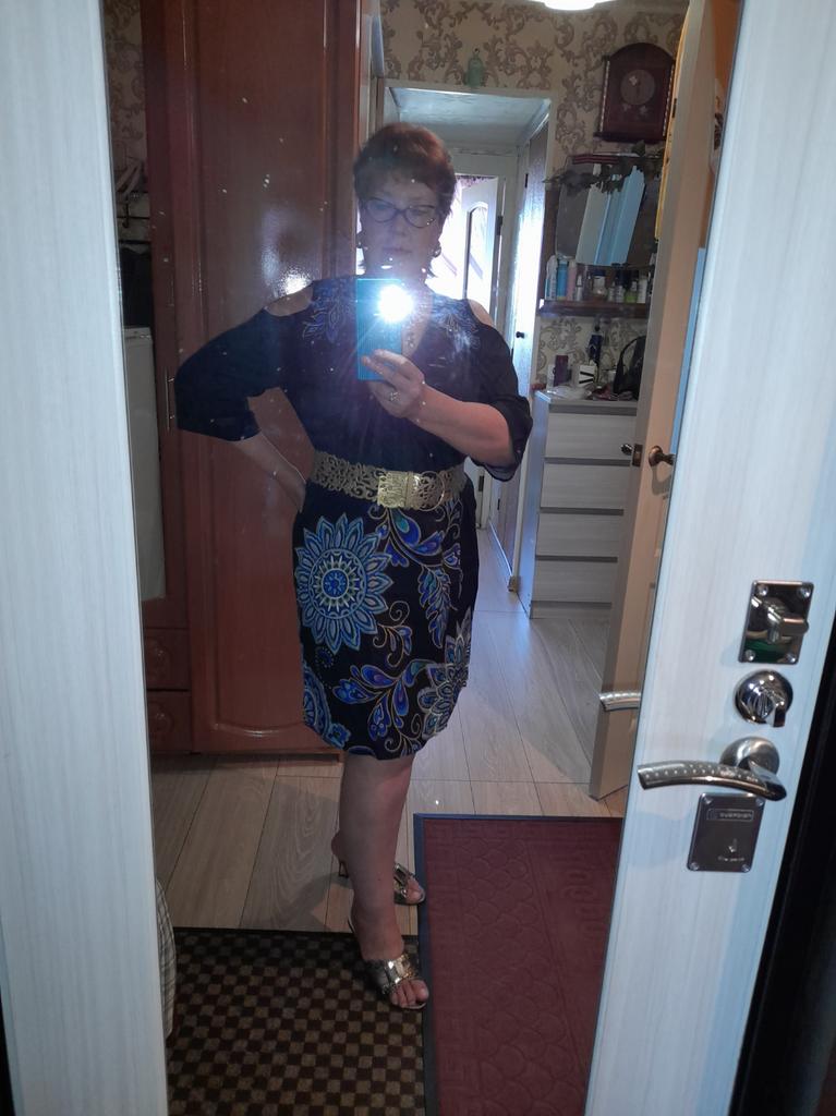 Excellent dress, the fabric is silky. Size XXL is just right for size 54.