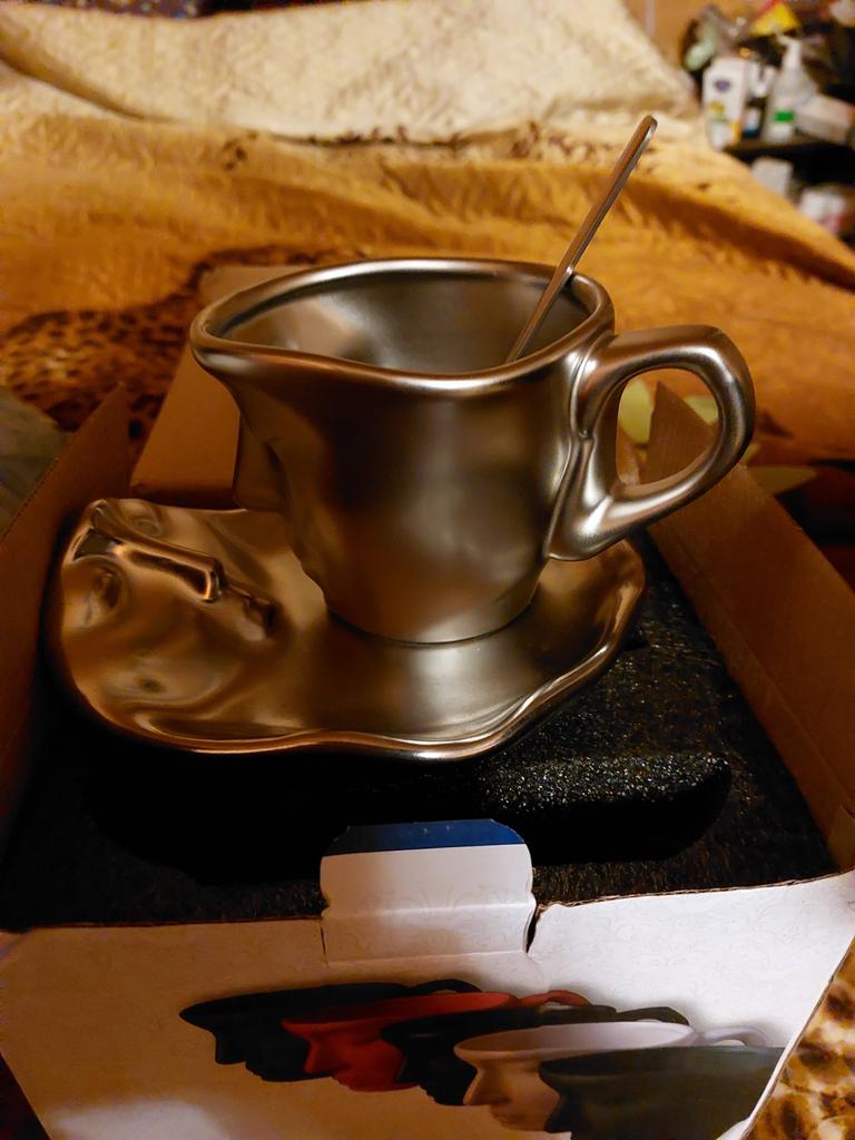 Ceramic Coffee Mug with Saucer and Spoon Set Tea Cup 3D Human Face 260ml Espresso for Home