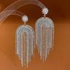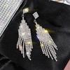 Inlaid Rhinestone Flowers Long Tassel Women Earrings Temperament Silver Needle Exaggerated Zircon Drop Earrings Sparkle Jewelry