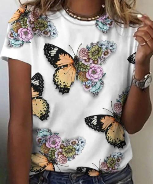 Women's Short Sleeved T-shirt 3D Butterfly Summer Print Fashion Harajuku Leisure Street Hip Hop T-shirt Women's New Release