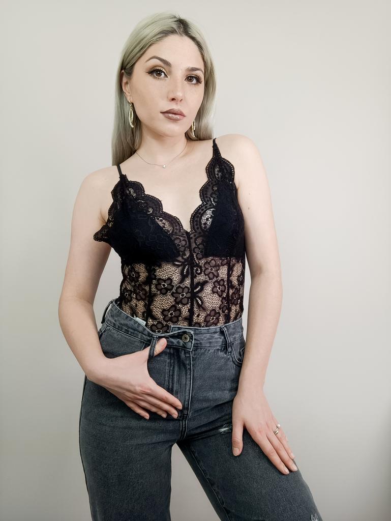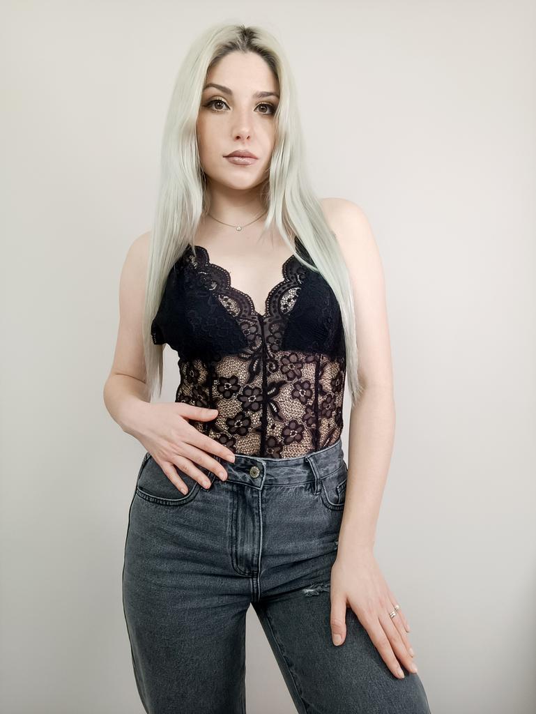 * sexy body with lace * 💥𝗟𝗶𝗲𝗳𝗲𝗿𝘇𝗲𝗶𝘁 22 days to Germany 💥𝗟𝗶𝗲𝗳𝗲𝗿𝘂𝗺𝗳𝗮𝗻𝗴 The delivery includes 1 bodysuit in the corresponding color and size. It is only available in black in sizes S to XL. I ordered it in size S in black. I wear size 36 to 38. I weigh 62 kg over 172 cm. Cup size 75D. It fits me well, the body is perhaps even a bit too big. It's very stretchy. 💥𝗤𝘂𝗮𝗹𝗶𝘁ä𝘁 The body is of course not opaque, thanks to the lace. But in the crucial places (breast) it is opaque... so you don't have to pull down a bra. There is a beautiful lace on the neckline. It looks beautiful. The body has a nice fit, but is a bit too loose on the chest for me. The straps could be tightened to suit your individual needs (see photo) I particularly like the fact that you can open and close it with buttons at the crotch. You don't have to take it off completely when you have to go to the toilet. And that the body is completely opaque in the lower area. I think that the body is true to size or a bit bigger. For material composition : 95% Polyester 5% Elastane 💥𝗙𝗮𝘇𝗶𝘁 Mega sexy body that could also be worn as a top in pants, as can be seen in the pictures. I have nothing to complain about. You can order the bodysuit in its original size or one size larger. It is almost true to size.