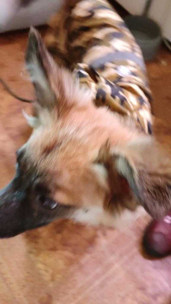 Yorkie is 4 months old, a bit big for now, but by autumn he will be just right.