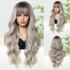 ALAN EATON Light Ash Blonde Wavy Synthetic Wigs Long Ombre Fake Hair Wave Wig with Bangs Heat Resistant Daily Wig for Women Use