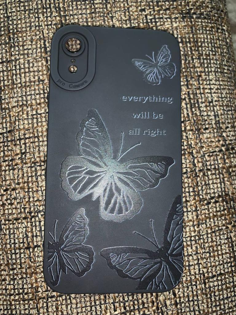 The case does not match the picture. The print is of poor quality, the butterflies are outlined in gray at the edges. Not completely black.