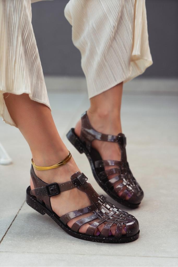 Women's Casual Sandals Anderline Black Silvery Belt Detail Summer Shoes