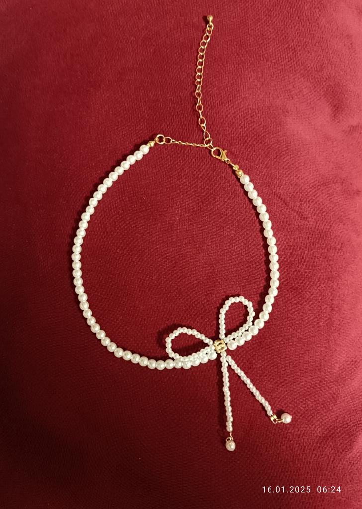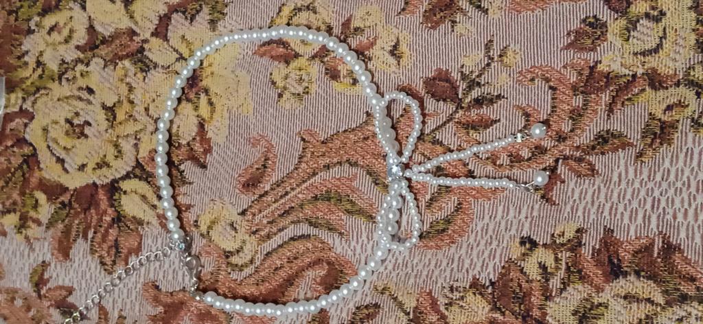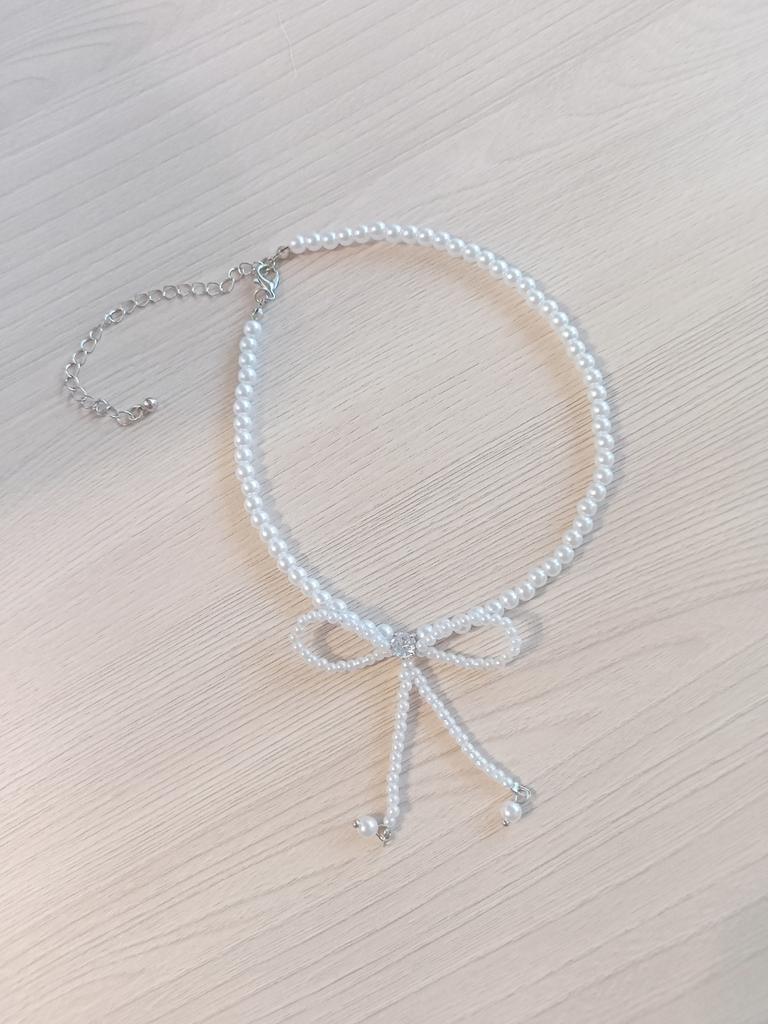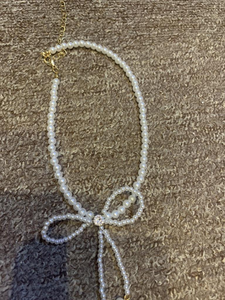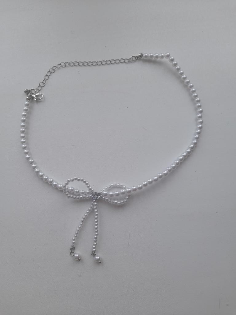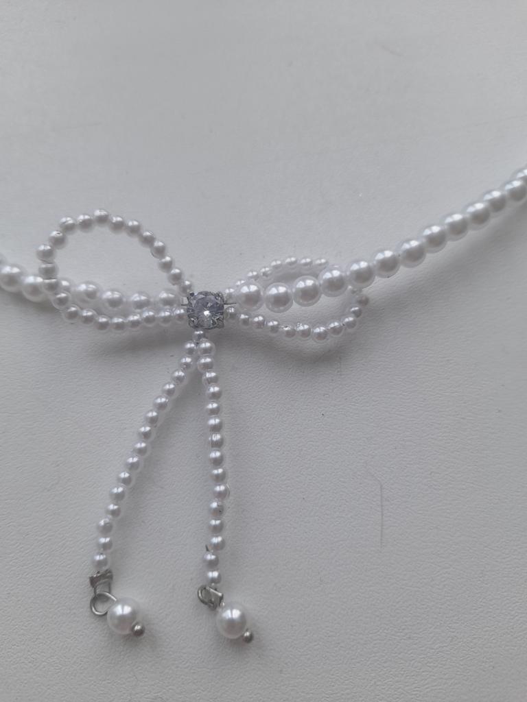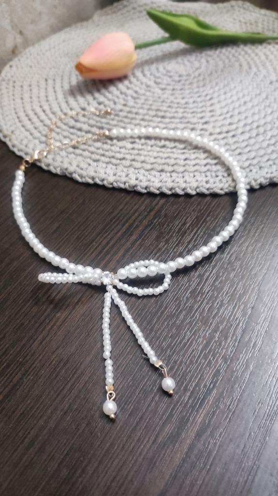 A small necklace! Delicate, cute! The charm lies in the elegant pearl bow. Can be worn for a holiday and for a mood boost on weekdays.