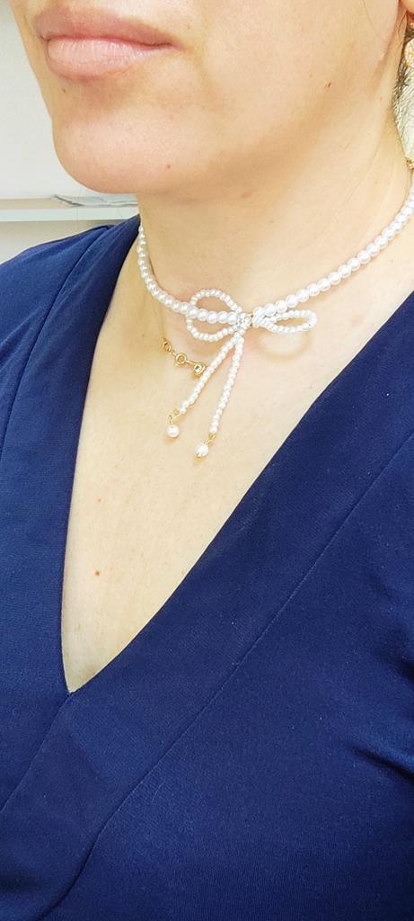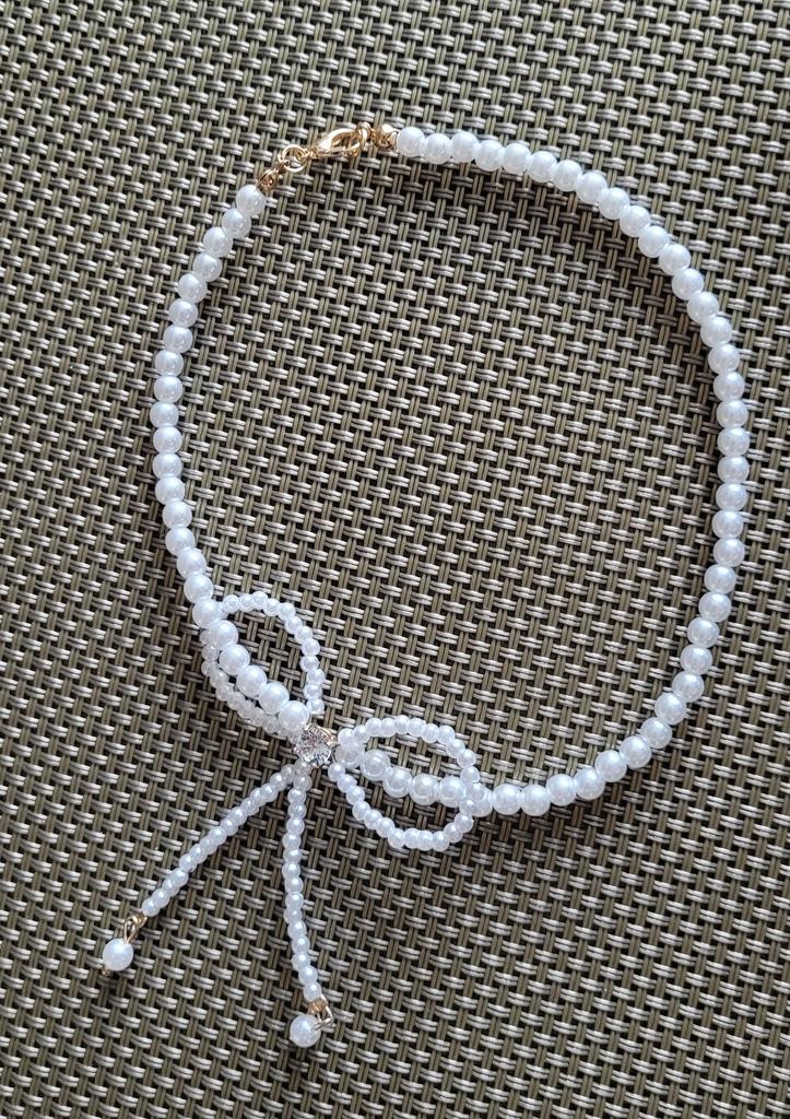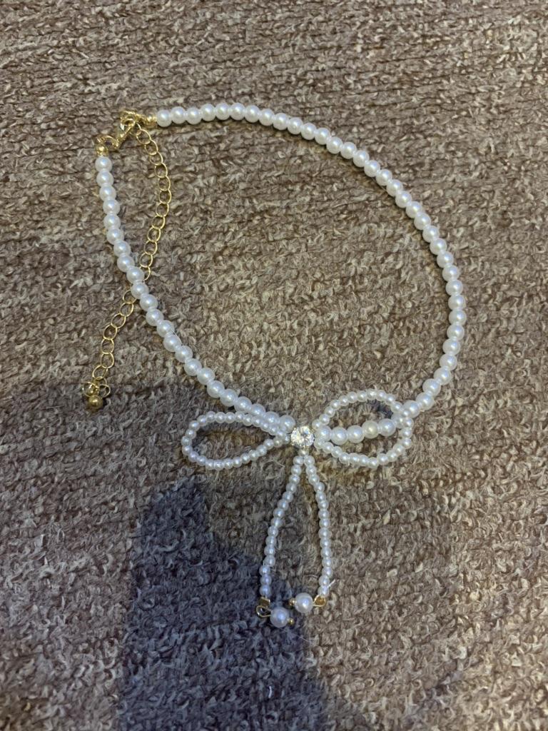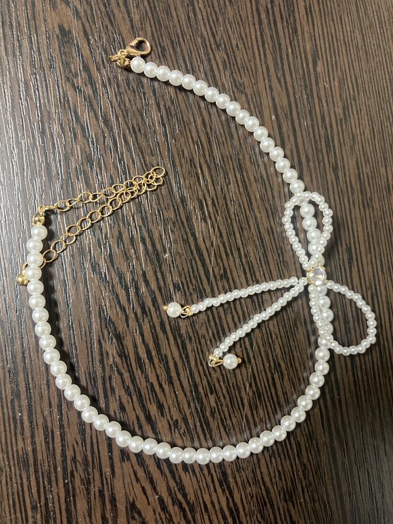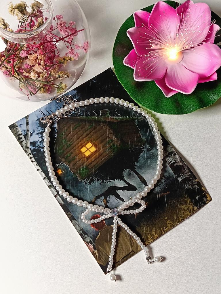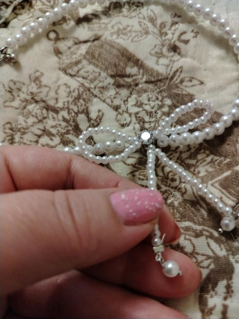 A small necklace! Delicate, cute! The charm lies in the elegant pearl bow. Can be worn for a holiday and for a mood boost on weekdays.