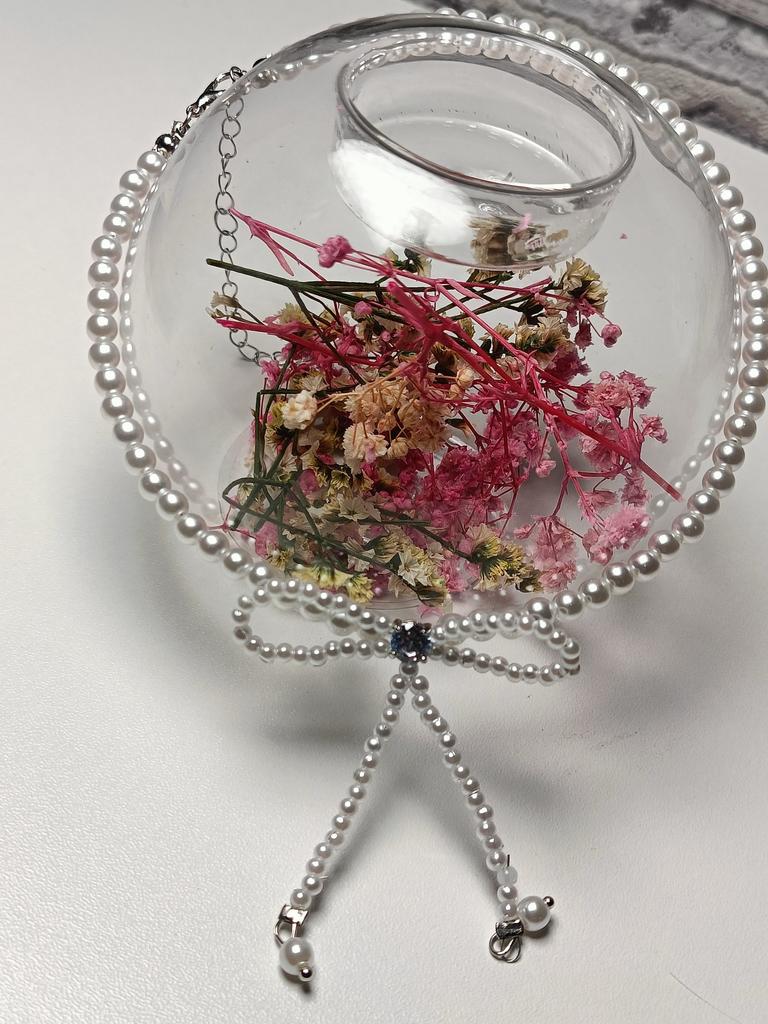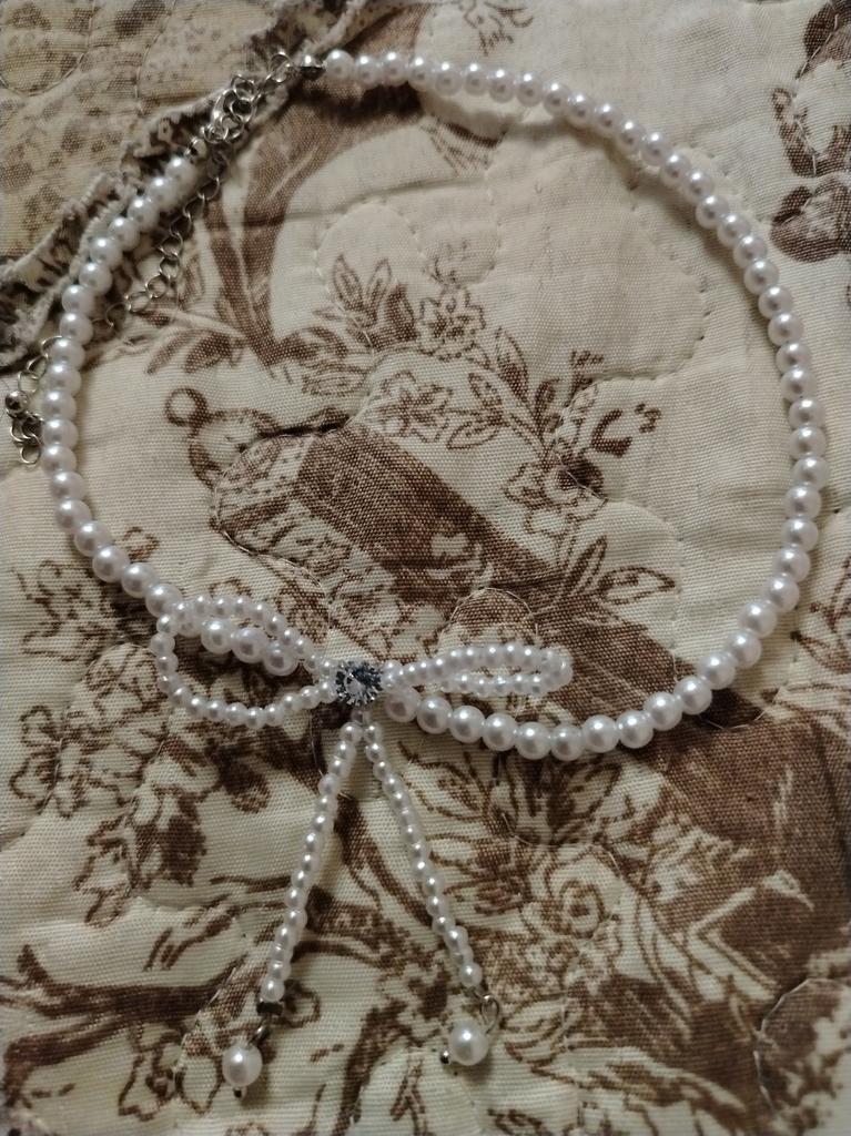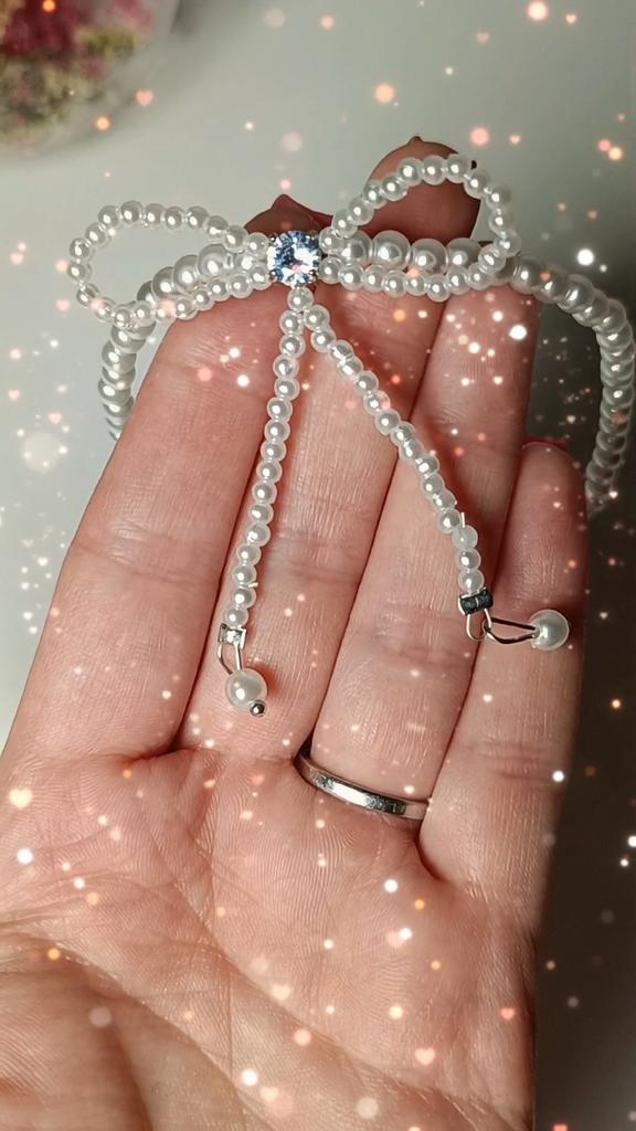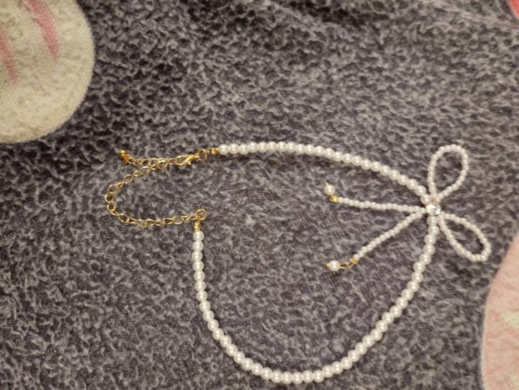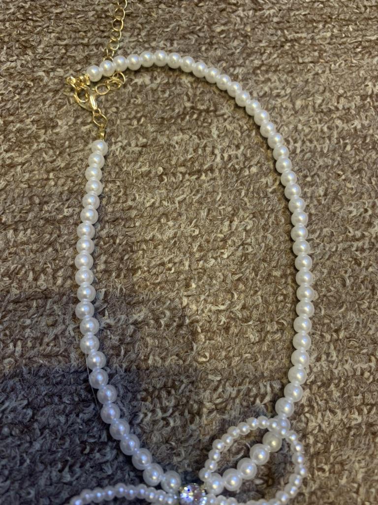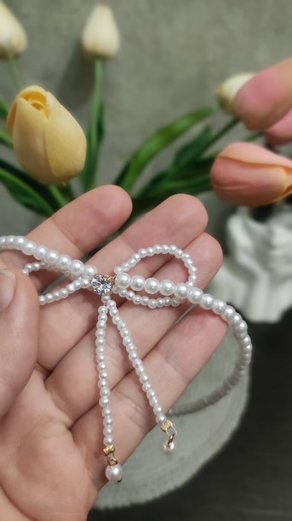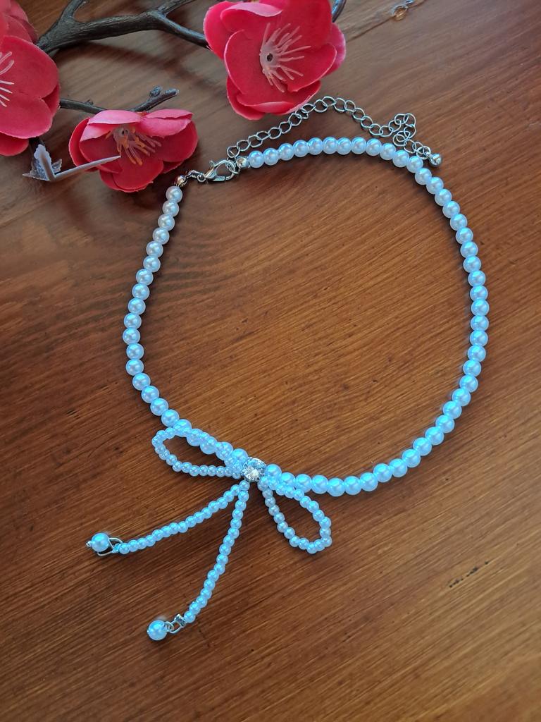 A small necklace! Delicate, cute! The charm lies in the elegant pearl bow. Can be worn for a holiday and for a mood boost on weekdays.
