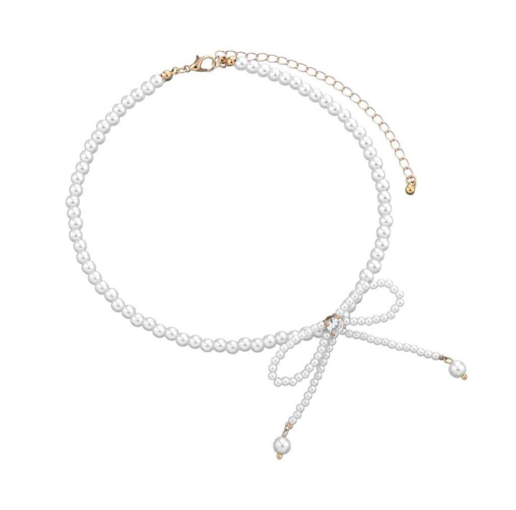 Elegant Zircon Bowknot Necklaces for Women Imitation Pearl Bow Choker Necklaces Exquisite Bowknot Tassel Pendant Necklace