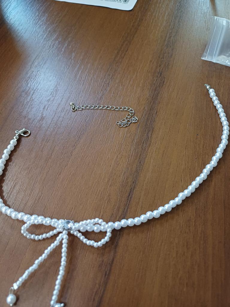 Imitation pearl choker The decoration looks simple but nice.. More suitable for young girls, especially with some kind of thematic image. Carabiner clasp, received in a regular bag. I don't know how long it will last, but for now I wear it with pleasure! For its price, the quality is good.