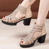 Black High Heeled Sandals Women's Peep Toe Rhinestone Design Retro Roman Style Thick Sole Waterproof Platform Summer