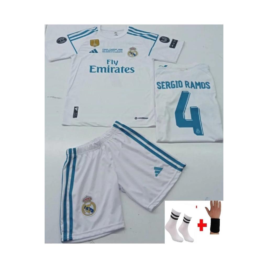 Sergio Ramos Real Madrid 2018 White Home 4-piece Set Kids Football Jersey