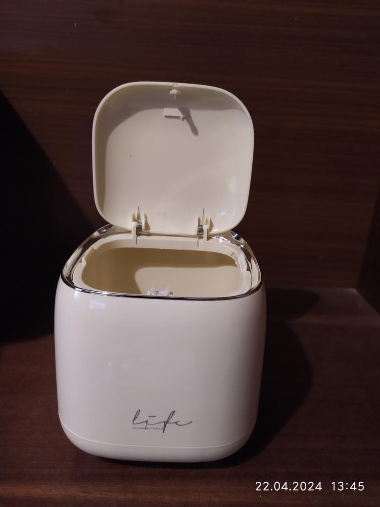 I am happy with the product, I am already using it. It is convenient to open and close. It is good that it is not transparent, the garbage is not visible.