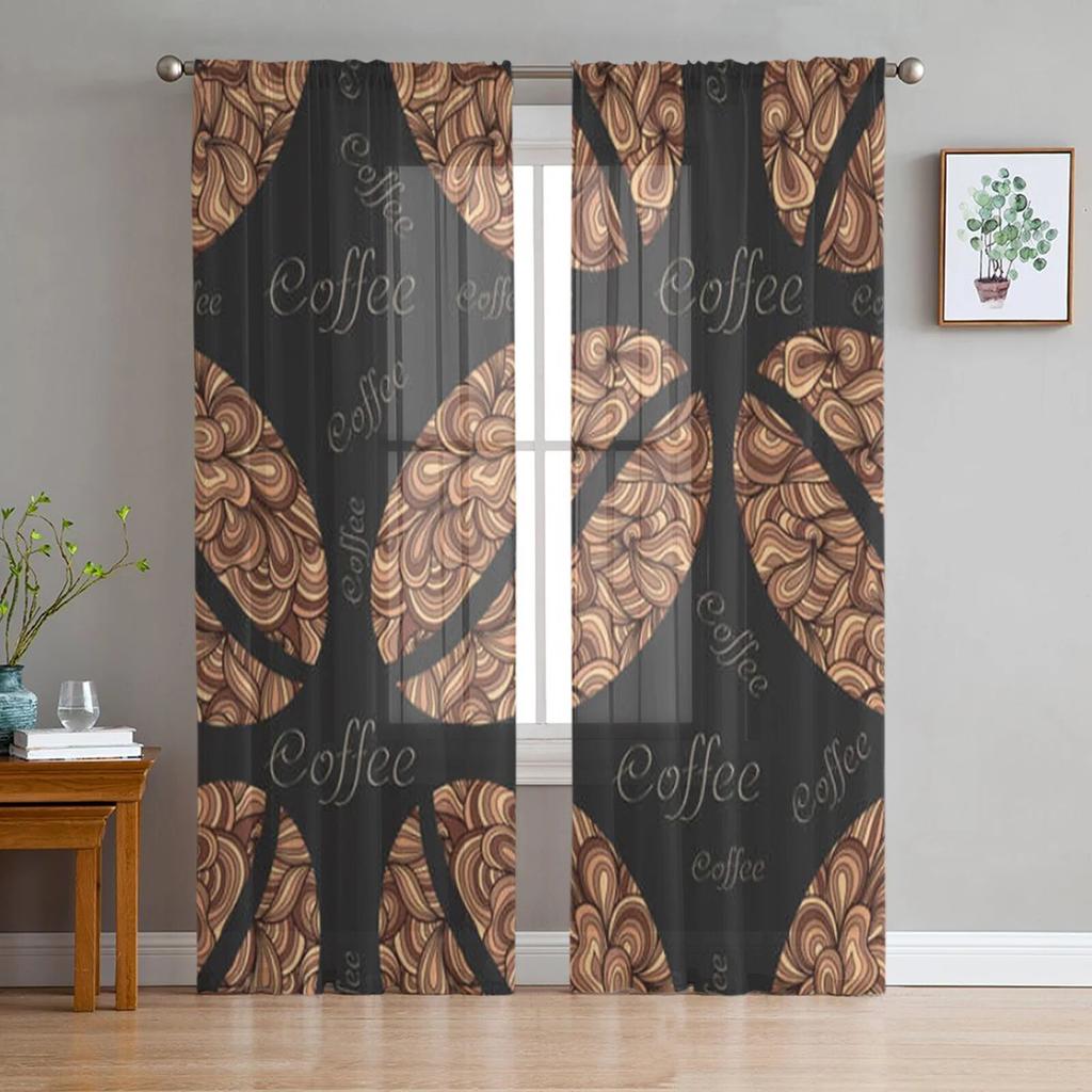 Coffee Beans Sheer Curtains for Living Room Transparent Tulle Window Treatments Bedroom Kitchen Home Decor Veil Drapes