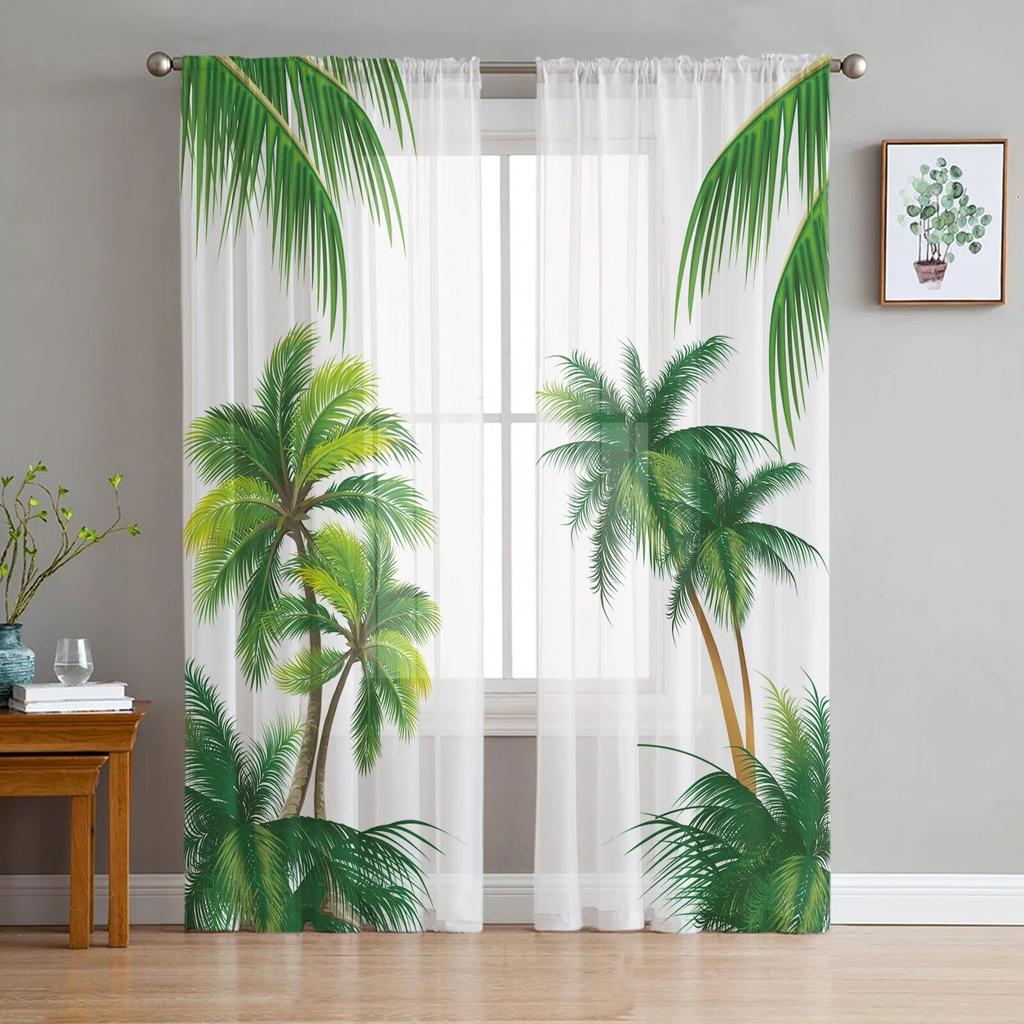 Beach Coconut Tree Summer Window Curtain for Bedroom Sheer Curtain for Living Room Luxury Tulle Curtain for Kitchen