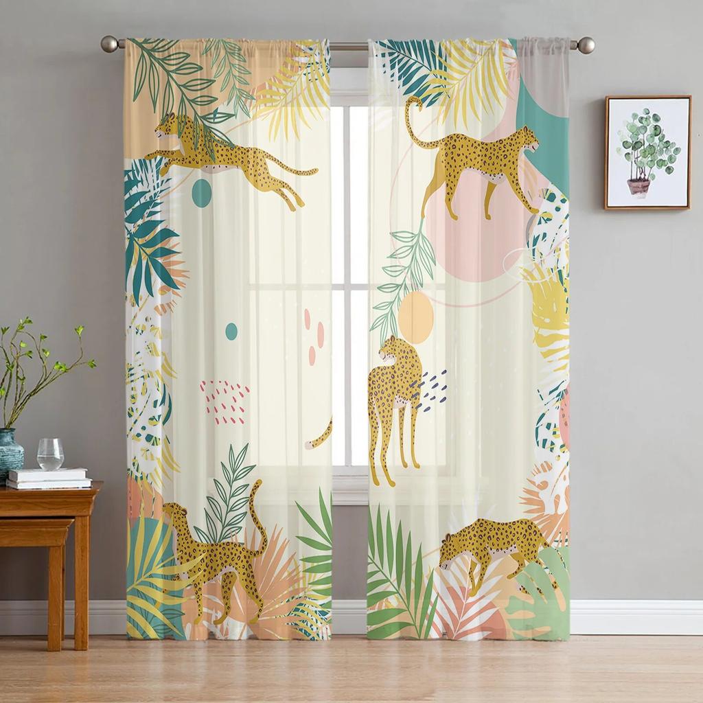 Leopard Tropical Palm Turtle Bamboo Bedroom Transparent Sheer Curtains Holiday Decoration Window Voile Tulle Curtain
