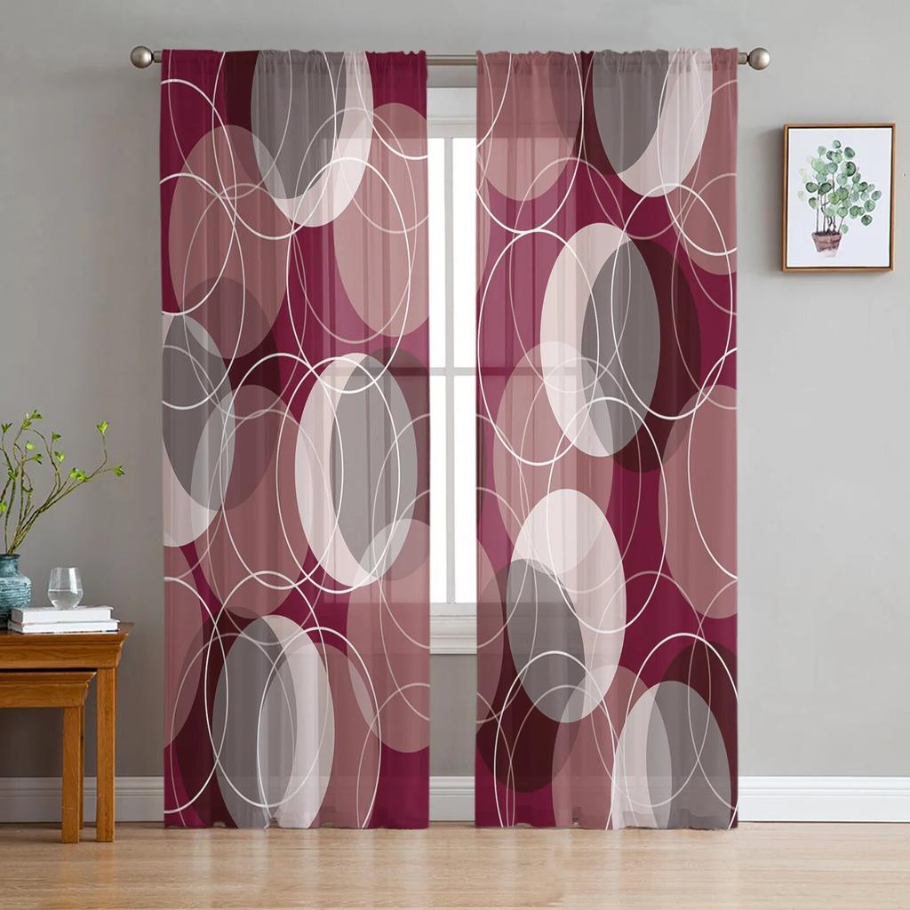 Circle Lines Red Dense Modern Printed Tulle Curtains for Bedroom Balcony Window Decor Creative Fashion Home Sheer Curtain