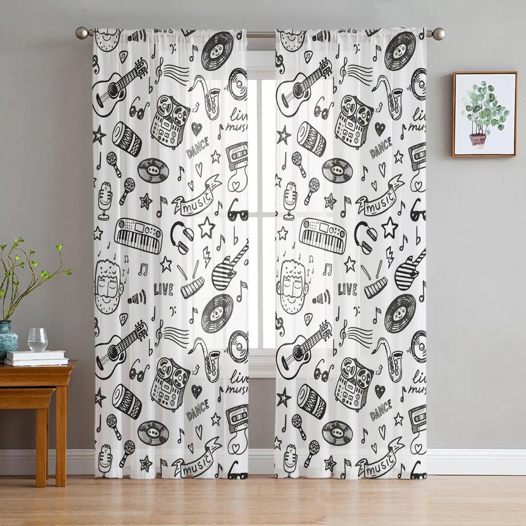 Graffiti Line Stick Tulle Curtains Living Room Kitchen Chiffon Curtain Bedroom Balcony Sheer Curtain Fashion Home Decor