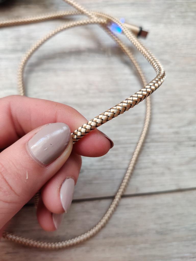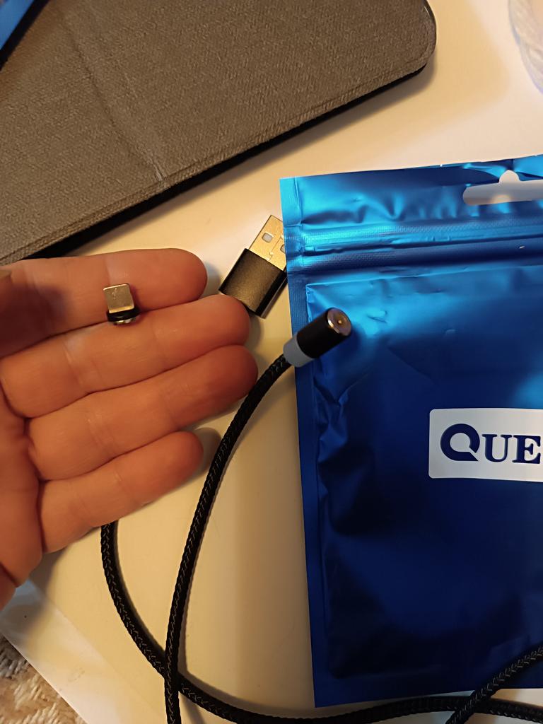 Magnetic charging USB cable from the QUEED store Connection type: Micro. At the seller, if necessary, you can choose: For iPhone, Micro or Type-C. You can also choose a color: black, red or gold. ☺️ I chose golden ✨. The advantage of such a cable is that we insert the connector into the "socket" of our gadget once and do not remove it again, which means that the connector ("socket") does not wear out.. The corrector sits tightly in the connector and does not fall out. Magnets rotate 360 degrees The cable has a nylon braid, thanks to which it will last longer ☺️👍 Delicate illumination makes it easy to find the cable in the dark 😉 The length of the cable is 1 m. A good, convenient cable option. Recommend 🛒. If the review was useful, put it as a favorite ❤️😘 I am adding enough photos + videos to make it easier for you to decide 📸 🎥 I received the goods in 37 days in a combined package 🚚 The track was tracked completely. The arrival at the delivery point was notified by sms 📲 Packaging: bubble envelope and individual packaging (zip bag with logo). Goods without defects. Happy shopping and fast deliveries to everyone 🛒☺️🚀🌼