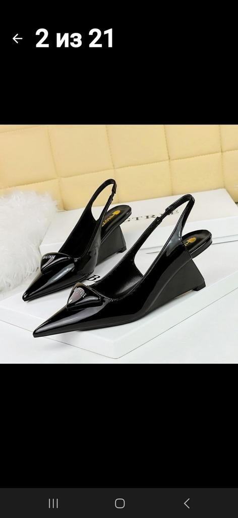 Fashionable Patent Leather Shallow Cut Pointed Hollow Back Strap High Heeled Sloping Heel Shoes for Women's High Heels
