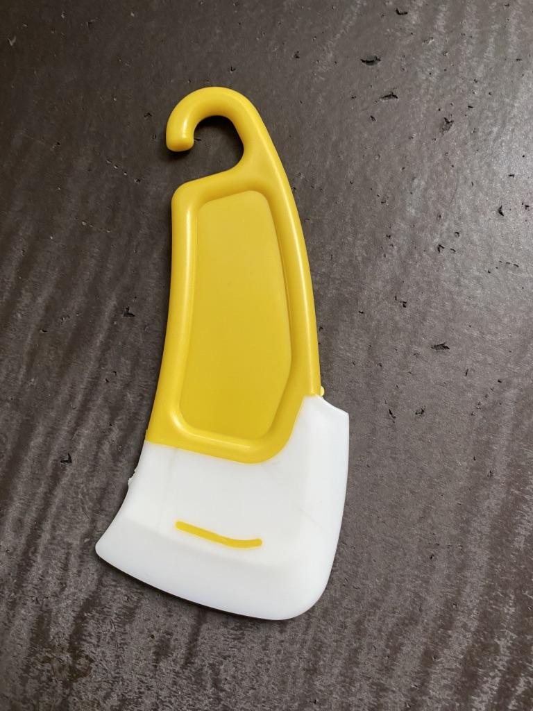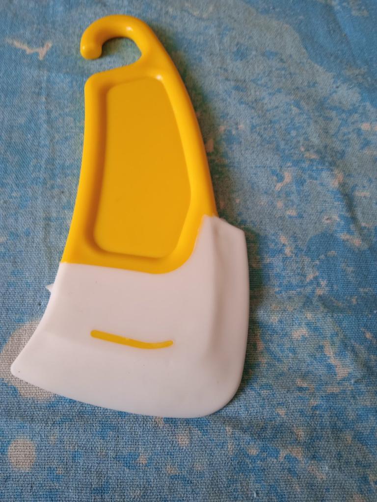 A spatula-scraper is a necessary item in the kitchen. To scrape off the stuck-on food residue from the pan, stove, etc.