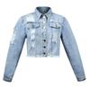 Woman Long Sleeve Ripped Short Denim Jacket Fashion Hipster Jeans Coat Street Casual Female Clothing S-XL