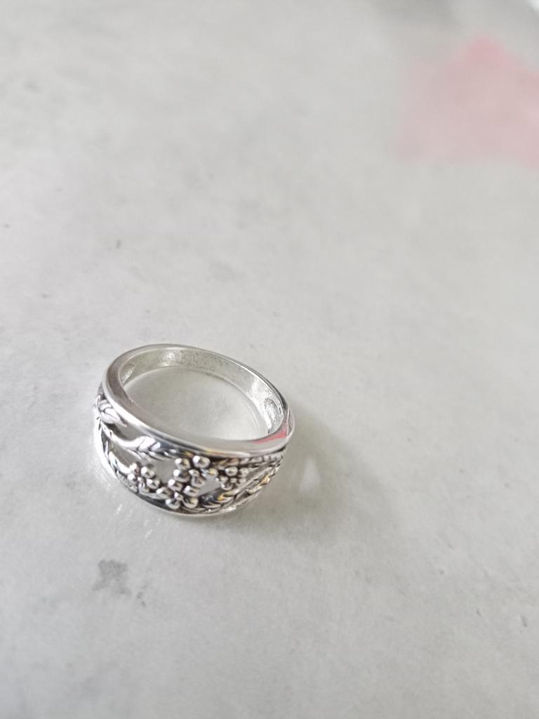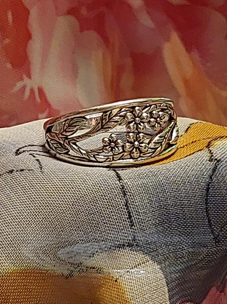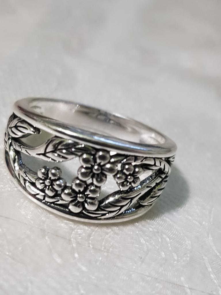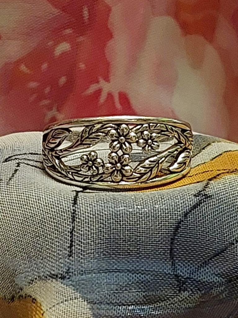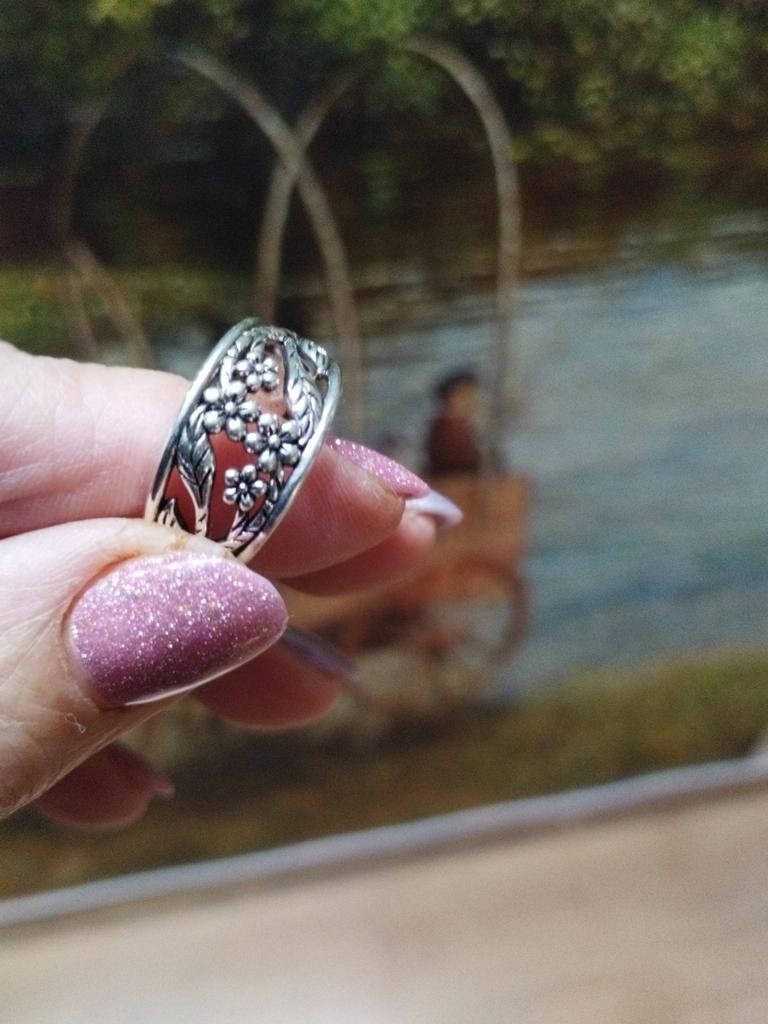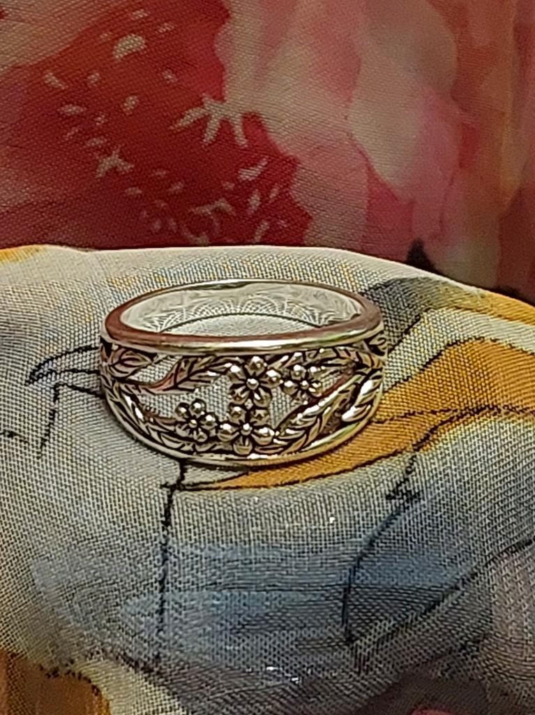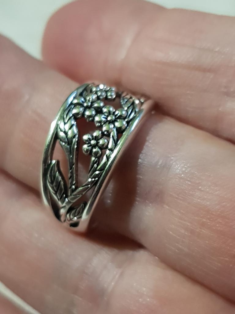 I wanted a ring like this. The ring looks much better in real life than in the photo.. Carved ring. With plant twist. The plants seem to be intertwined on it. Nice ring. The ring is not removable! Keep in mind. Must be ordered by size! I ordered size 8.