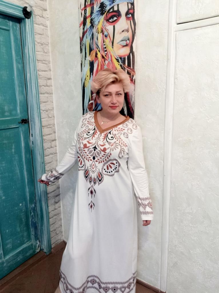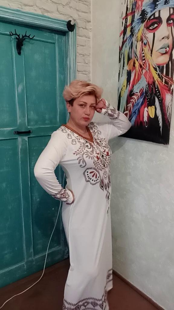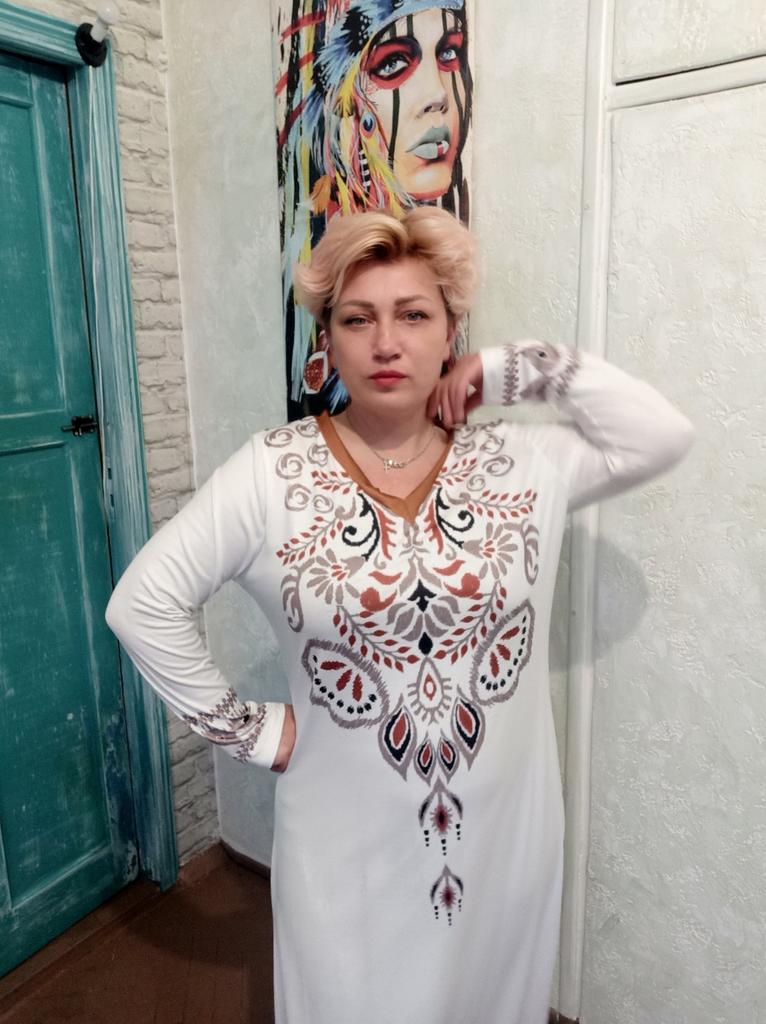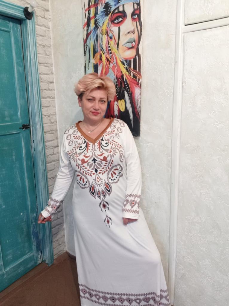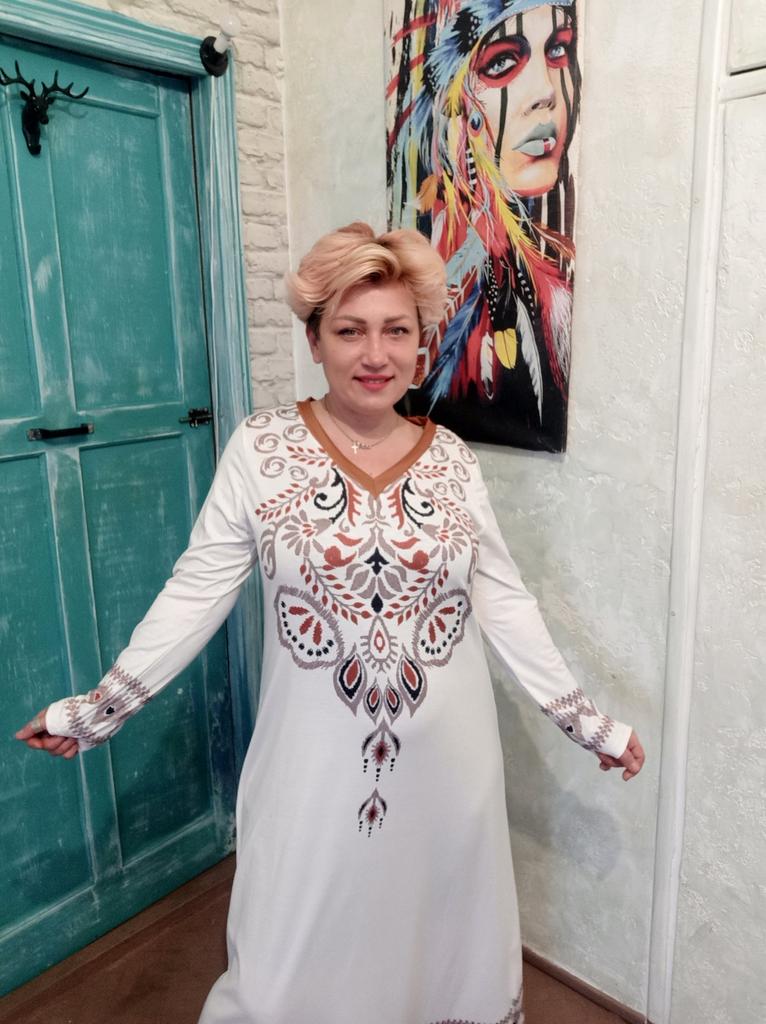 For my 50th, I bought 2XL, could have gone smaller, but knitwear - "all the folds" are visible. Sleeves are a bit long. Looking at the photo (and some comments), the dress seemed dressy to me, but it arrived faded. But the fabric is pleasant, I will use it as a nightgown.