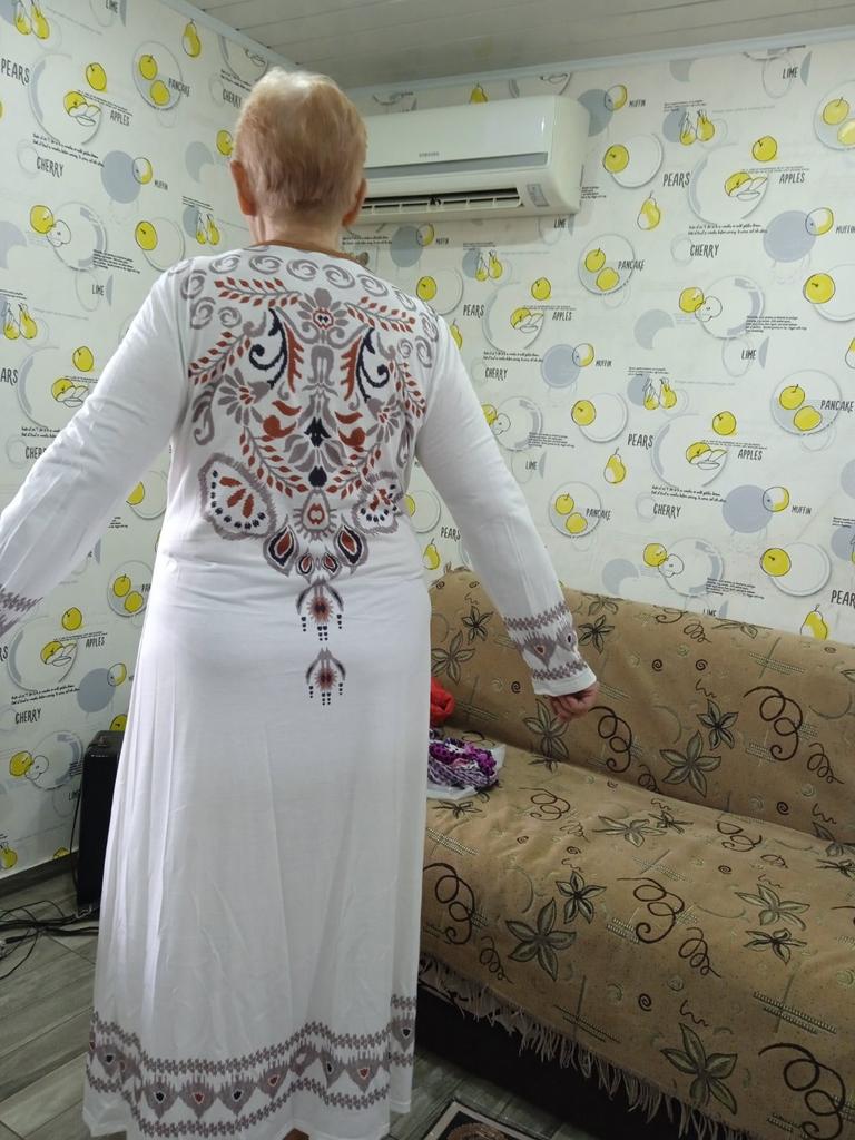 The dress is light, the fabric is soft. The parameters are he 118, from 100, ob 120. Don't judge strictly. I'm 71 years old.