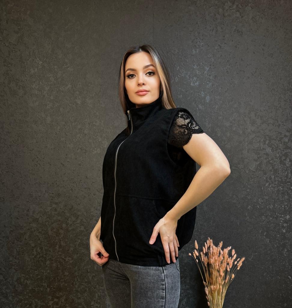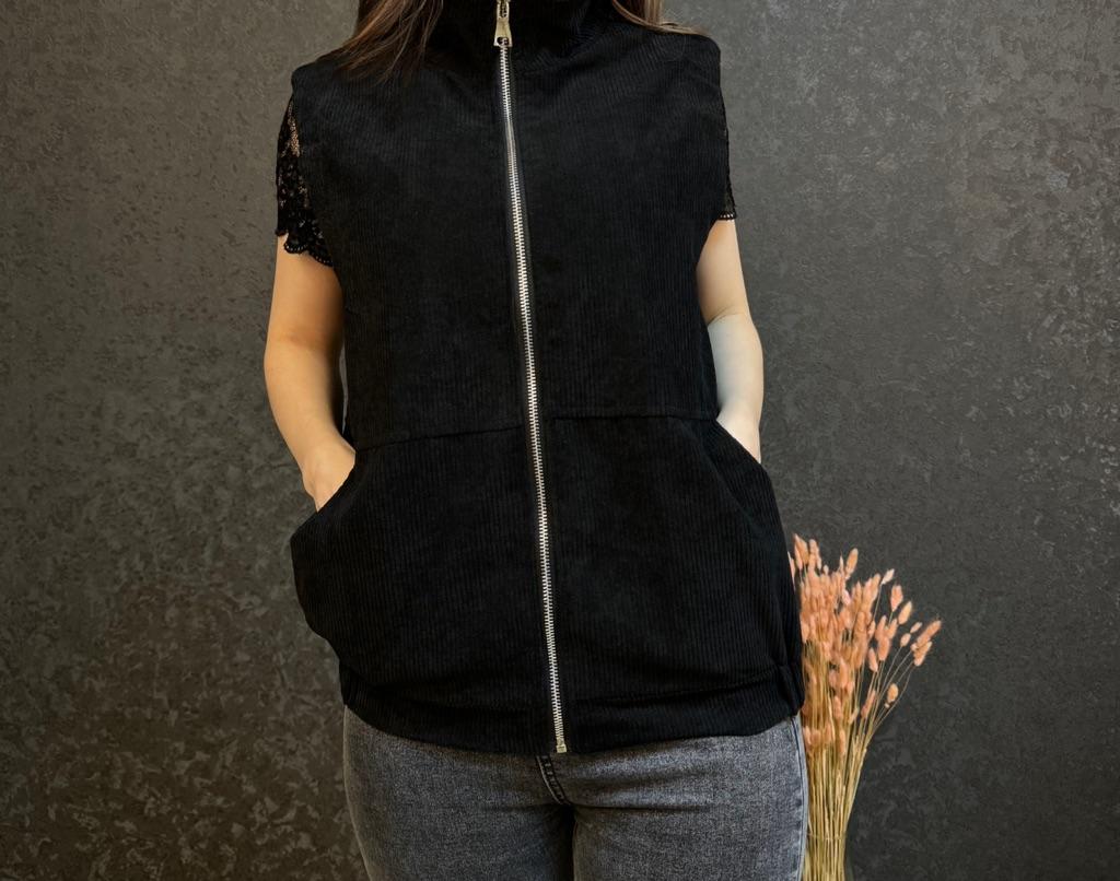Plus Size Corduroy Vest Jacket for Women, Casual Outerwear