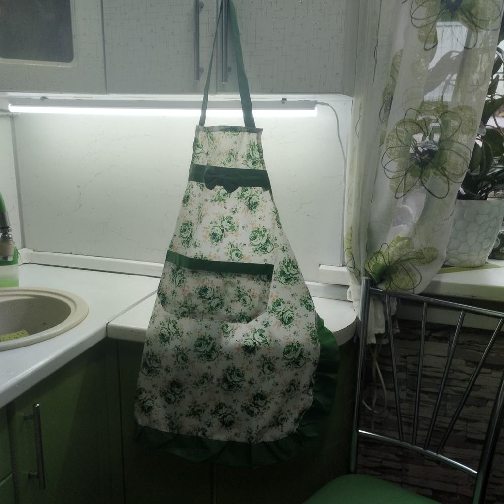 The apron for my green kitchen was a five-star hit. I don't really like washing dishes, there's no room to put a dishwasher. But small things, the apron and all the kitchen gadgets, somehow make this task more positive.