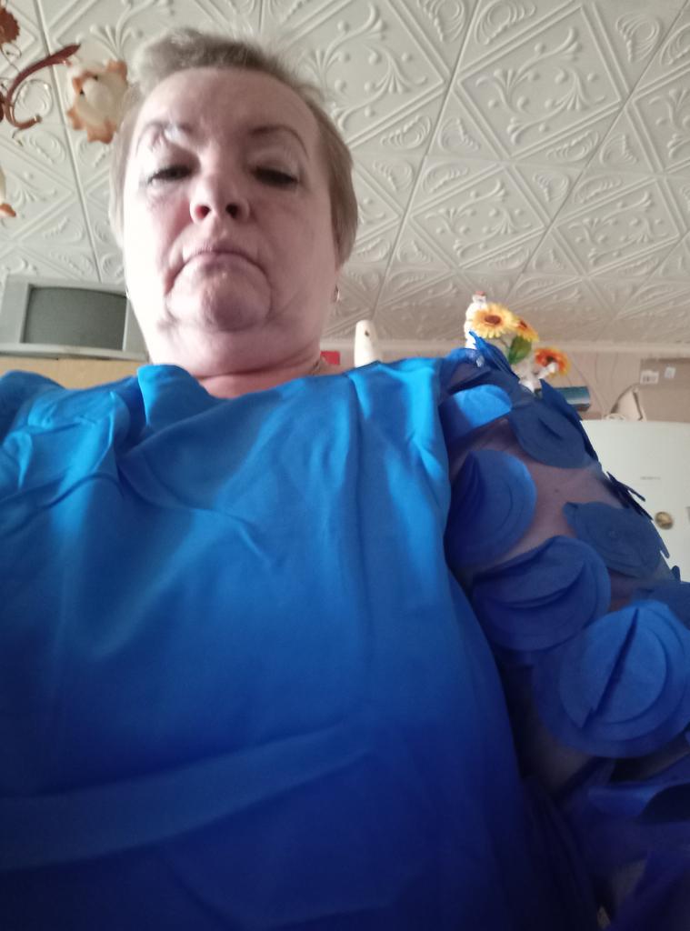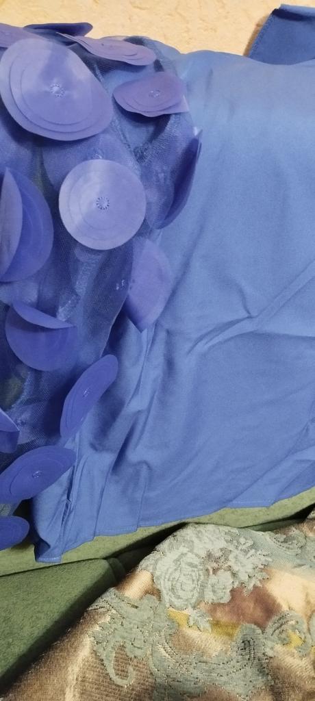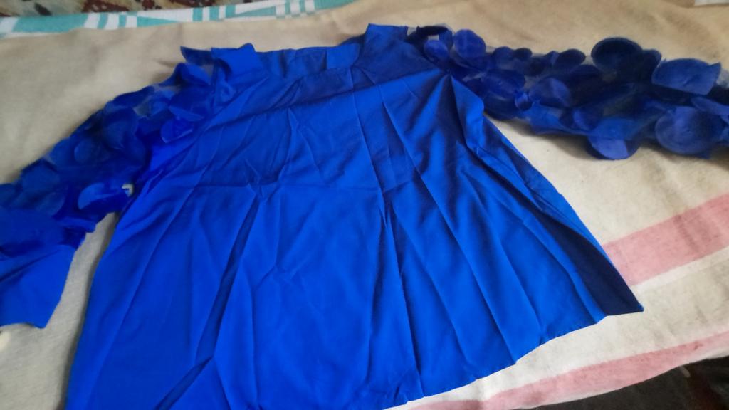The color of the sleeves does not match the color of the blouse - different shades of blue. The fabric is cheap, the sleeves are tulle and made of lining fabric circles. It looks better in the photo than in real life. The size is correct.