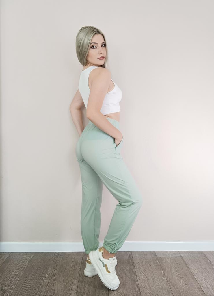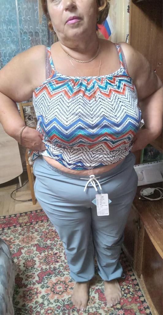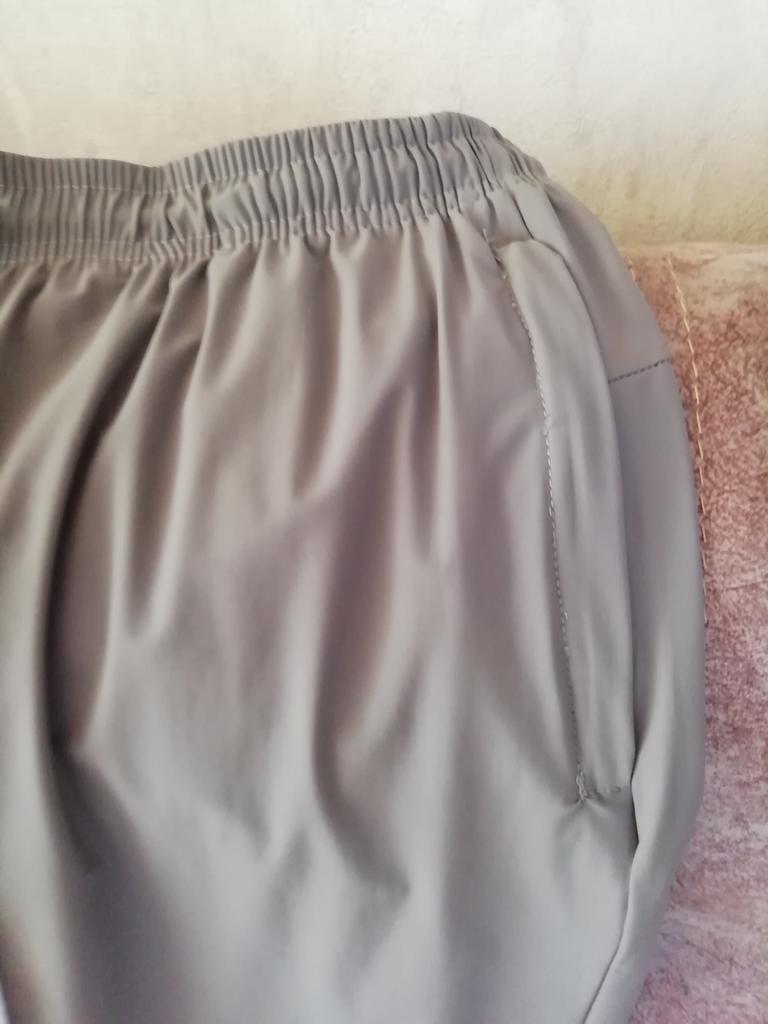 Sports pants made of light silky fabric. The fabric is pleasant to the body. Pockets with locks, I have them from a thin mesh, which is very convenient and does not stand out. This is my second purchase, the first one was in mint color and a size smaller than 5xl, but it is close to my thighs and highlights even seamless underwear ๐คฃ๐, but I liked them so much that I decided to order 6xl in gray-blue color, also a nice color. The product is decent, I can recommend it, thank you.