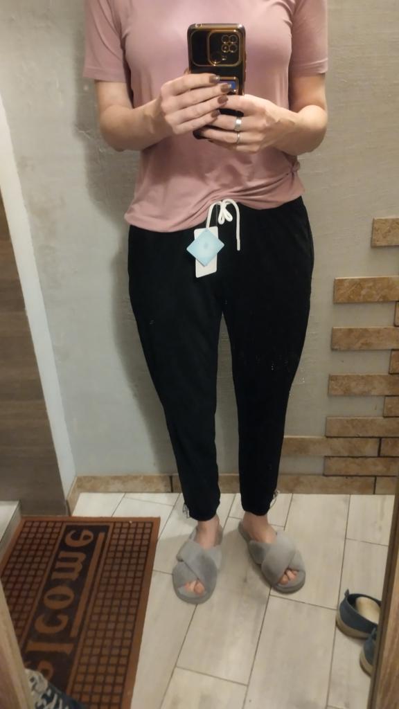 * cozy fashion- jogging pants * ๐ฅ๐๐ถ๐ฒ๐ณ๐ฒ๐ฟ๐๐ฒ๐ถ๐ Almost 3 weeks ๐ฅ๐๐ถ๐ฒ๐ณ๐ฒ๐ฟ๐๐บ๐ณ๐ฎ๐ป๐ด Included in the delivery is 1 pair of trousers in the corresponding color and size. The trousers are available in 6 different colors in sizes M to 6XL. I ordered the jogging pants in size XXL in violet. I wear dress size 36 to 38. I weigh 65 kg distributed over 172 cm.. The trousers fit me perfectly, I deliberately ordered them a bit larger because I wanted them to be a bit looser.! She is very stretchy. ๐ฅ๐ค๐๐ฎ๐น๐ถ๐รค๐ The trousers are completely opaque. The pants are very stretchy (see video). The ribbons at the cuff serve for decoration, but can also additionally fix the trousers. The cuffs at the foot as well as at the hip are elastic and very firm at the same time.. There are also straps at the cuffs on the hem that can be individually adjusted tighter or wider with an elastic band and a plastic closure. I haven't quite figured out the function yet, but I think it allows you to wear the pants short as well.. The sweatpants a nice fit. I especially like the color, it is exactly like in the manufacturer's pictures. For material composition : NYLON 76%. SPANDEX 24% I also find the length optimal for my height (172 cm). . ๐ฅ๐๐ฎ๐๐ถ๐ Mega beautiful and cozy sweatpants that you can also wear super fashionably and not just for sports. Thank you for the small gift ( silk scarf). For a slightly more comfortable fit, I would order one to two sizes larger than you normally wear.