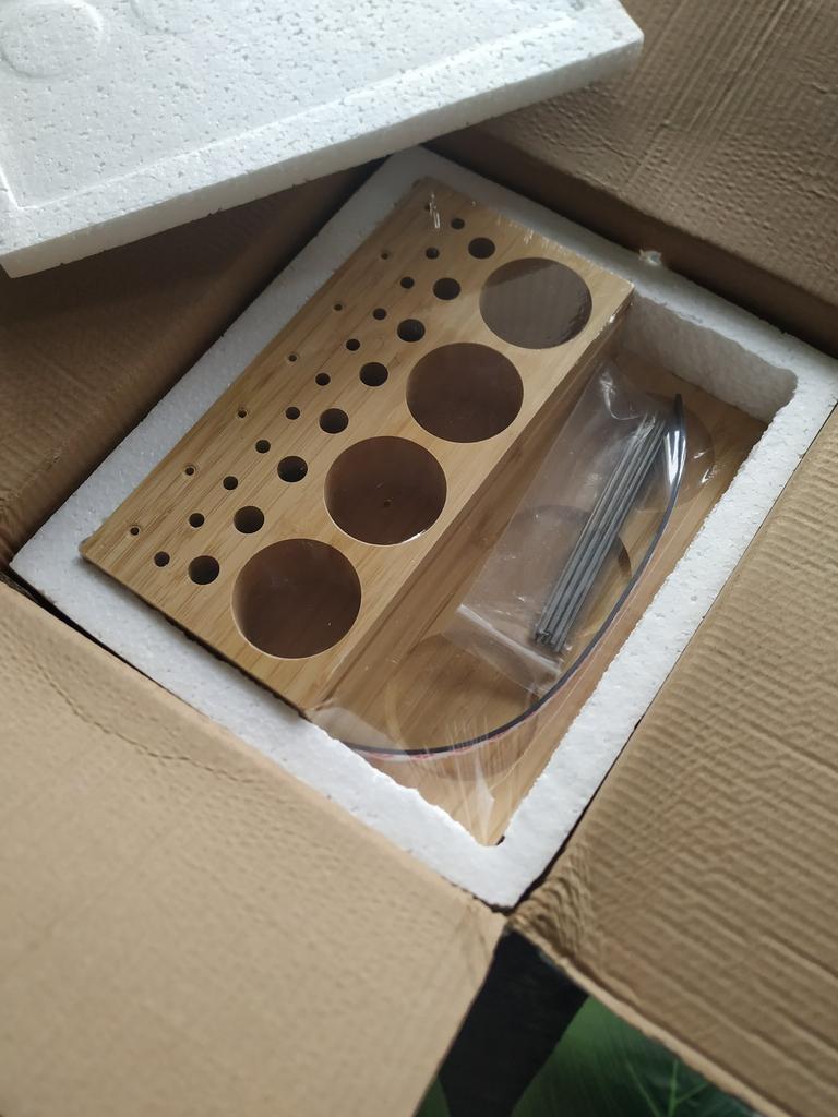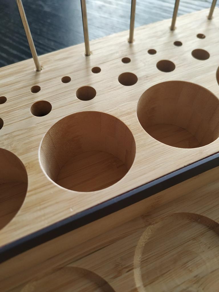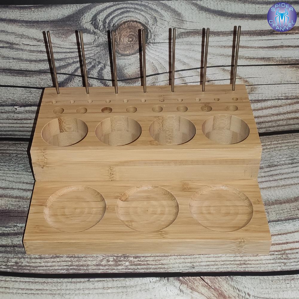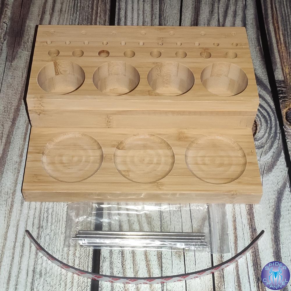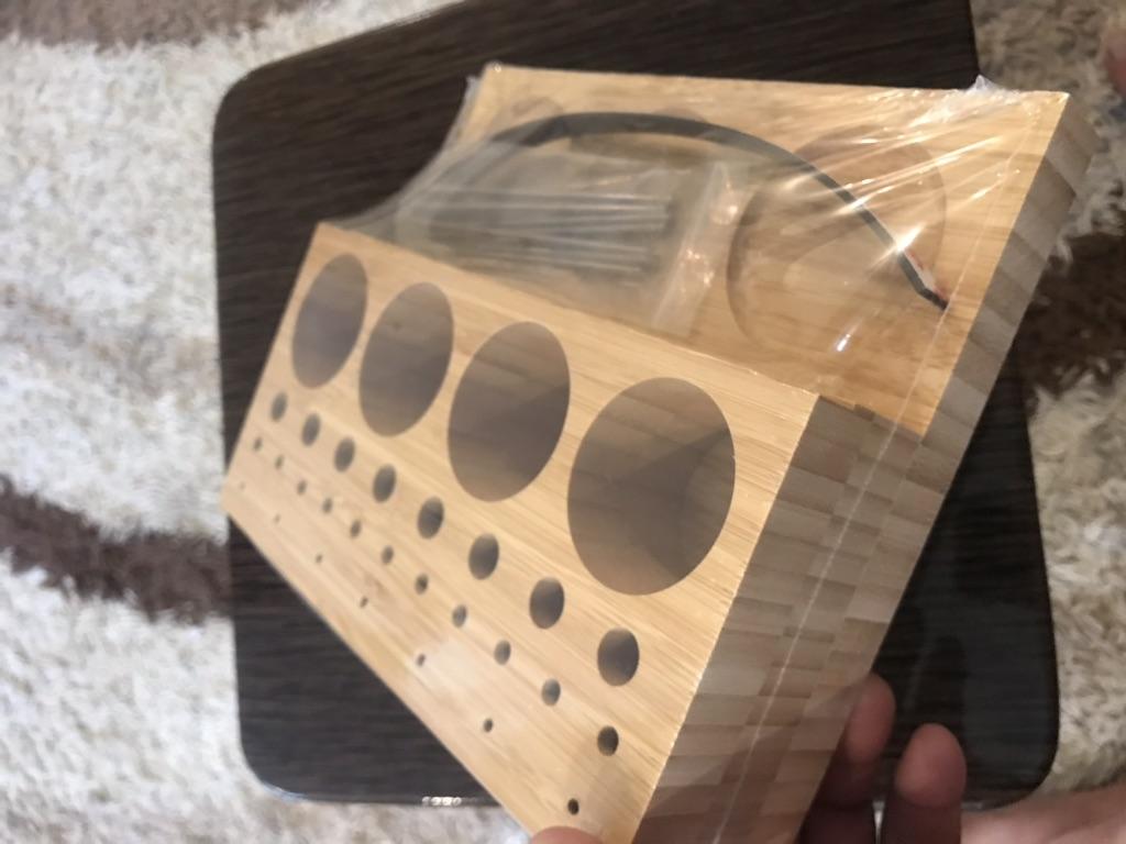Arrived in 3 weeks at home. Super!! ⭐⭐⭐⭐⭐ It's meant to hold fishing spools, but you can also use it for pens, pencils and other writing items. It keeps the desk nice and organised. Made of Bamboo wood. Comes with a magnetic strip and metal pins. Good quality! I advice!! 😘👌🏻