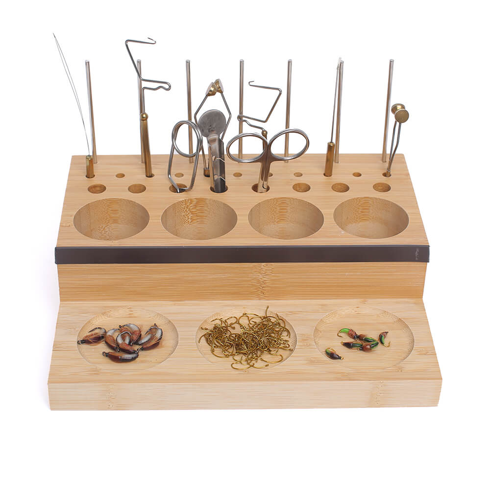Angler Fly Tying Fishing Kit Tool Organizer - Wooden Fly Fishing Desk for 12 Fly Fishing Tools - Store Fly Tying Materials, Scissors, Bobbin, Thread