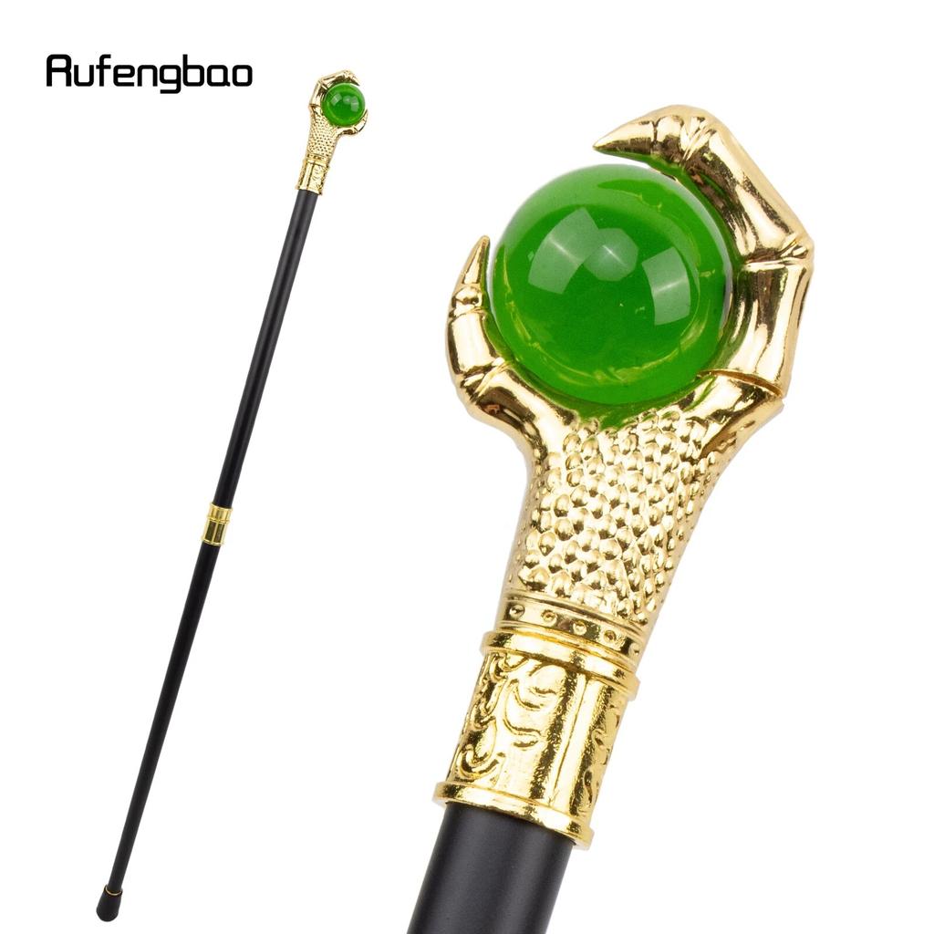 Dragon Claw Grasp Green Glass Ball Golden Walking Cane Fashion Decorative Walking Stick Cosplay Cane Knob Crosier 93cm