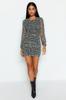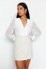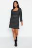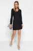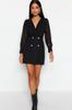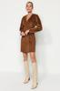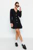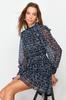 Women's Fashion Casual Standard Sleeve Mini Navy Blue Collar Detailed Lined Chiffon Woven Dress